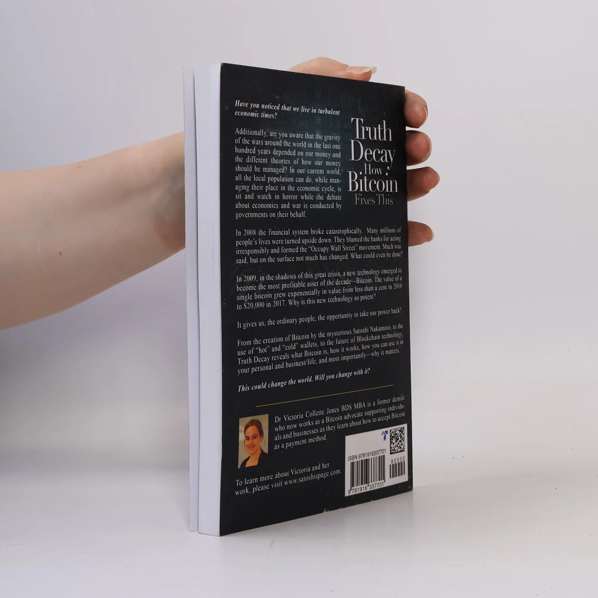 In today's turbulent economic climate, the impact of global conflicts over the past century has often hinged on how money is managed. Ordinary people find themselves powerless as governments debate economic policies and war strategies on their behalf. The 2008 financial crisis shattered lives, leading to widespread blame directed at banks and the rise of movements like "Occupy Wall Street." Despite the outcry, significant changes remained elusive. However, in the aftermath, a groundbreaking technology emerged: Bitcoin. Its value skyrocketed from less than a cent in 2010 to $20,000 in 2017, offering a new avenue for individuals to reclaim their financial autonomy. This innovation, introduced by the enigmatic Satoshi Nakamoto, introduces concepts like "hot" and "cold" wallets and the transformative potential of blockchain technology. In "Truth Decay," Victoria Collette Jones, a dentist and business owner, shares her insights on Bitcoin, detailing its functionality, practical applications, and its significance in a rapidly changing world. Readers will learn how money truly works, the distinctions between Bitcoin and other blockchain technologies, and how to protect their wealth from hyperinflation, preserve purchasing power, and build resilience in business. This pivotal moment calls for humanity to make crucial decisions about the future. Will you adapt and embrace this change?