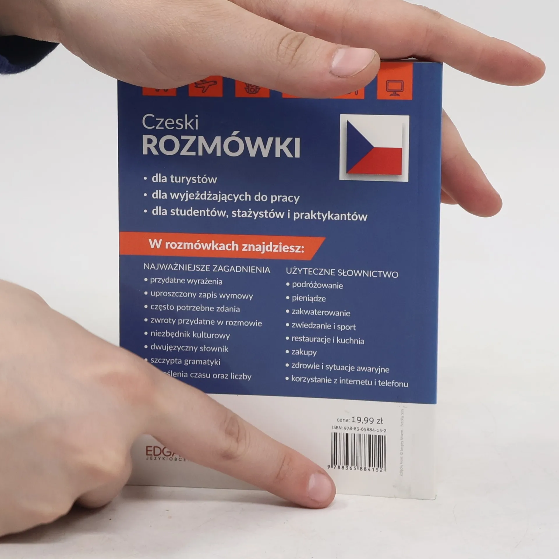 Rozm�wki na każdy wyjazd to doskonała pomoc dla wszystkich, kt�rzy wybierają się do Czech w celach zawodowych, turystycznych lub też na praktyki, staż czy studia.Z Rozm�wek na każdy wyjazd dowiesz się, jak zapytać o drogę i godziny otwarcia, zam�wić posiłek albo zgłosić usterkę. Przedstawione użyteczne zwroty ułatwią ci robienie zakup�w czy zameldowanie w hotelu i podpowiedzą, jak reagować w sytuacjach awaryjnych. Dodatkowo znajdziesz tu przydatne ciekawostki i rady dotyczące lokalnych zwyczaj�w.Część teoretyczna przybliża podstawowe reguły gramatyczne oraz fonetyczne języka czeskiego. Dodatkowo dwujęzyczny słownik oraz uproszczony zapis wymowy każdego wyrażenia ułatwiają porozumiewanie się w języku czeskim.Z Rozm�wkami na każdy wyjazd:- poznasz przydatne zwroty i wyrażenia- porozumiesz się z Czechami w ich języku- zrozumiesz szyldy, napisy i komunikaty- opanujesz podstawy wymowy- dowiesz się więcej o Czechach i ich mieszkańcach