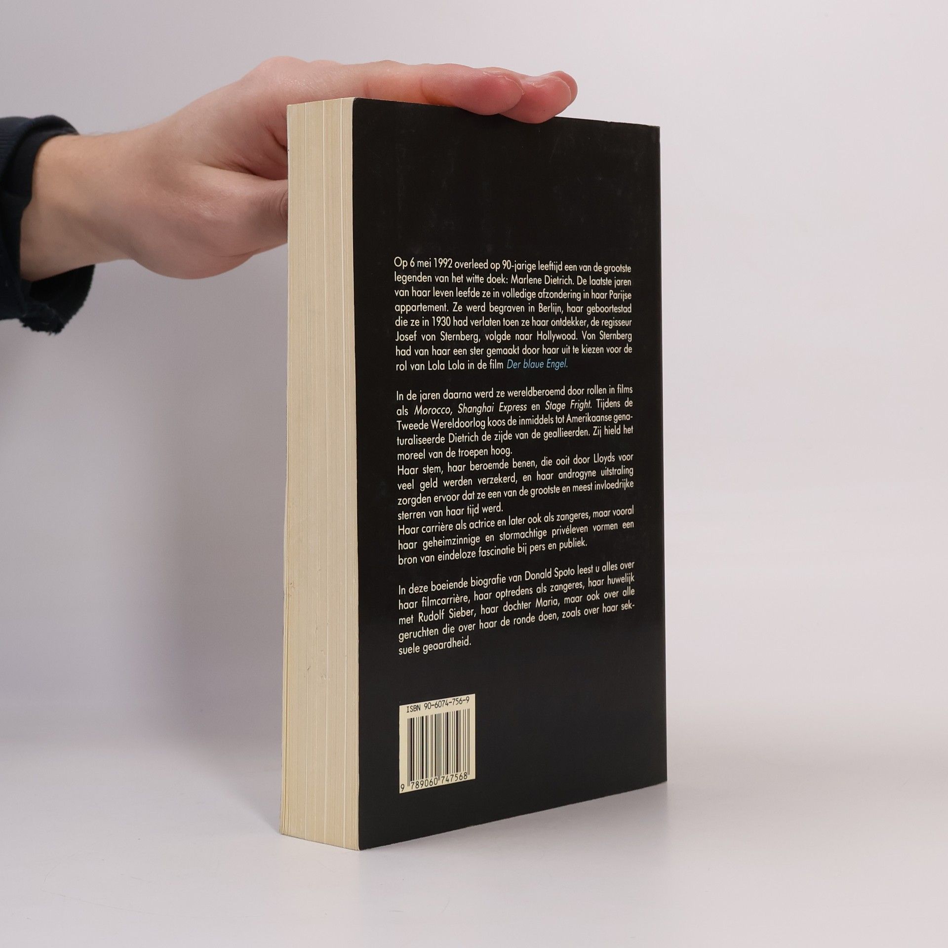 Op 6 mei 1992 overleed op 90-jarige leeftijd een van de grootste legenden van het witte doek: Marlene Dietrich. De laatste jaren van haar leven leefde ze in volledige afzondering in haar Parijse appartement. Ze werd begraven in Berlijn, haar geboortestad die ze in 1930 had verlaten toen ze haar ontdekker, de regisseur Josef von Sternberg, volgde naar Hollywood. Von Sternberg had van haar een ster gemaakt door haar uit te kiezen voor de rol van Lola Lola in de film Der blaue Engel. In de jaren daarna werd ze wereldberoemd door rollen in films als Morocco, Shanghai Express en Stage Fright. Tijdens de Tweede Wereldoorlog koos de inmiddels tot Amerikaanse genaturaliseerde Dietrich de zijde van de geallieerden. Zij hield het moreel van de troepen hoog. Haar stem, haar beroemde benen, die ooit door Lloyds voor veel geld werden verzekerd, en haar androgyne uitstraling zorgden ervoor dat ze een van de grootste en meest invloedrijke sterren van haar tijd werd. Haar carrière als actrice en later ook als zangeres, maar vooral haar geheimzinnige en stormachtige privéleven vormen een bron van eindeloze fascinatie bij pers en publiek. In deze boeiende biografie van Donald Spoto leest u alles over haar filmcarrière, haar optredens als zangeres, haar huwelijk met Rudolf Sieber, haar dochter Maria, maar ook over alle geruchten die over haar de ronde doen, zoals over haar seksuele geaardheid.