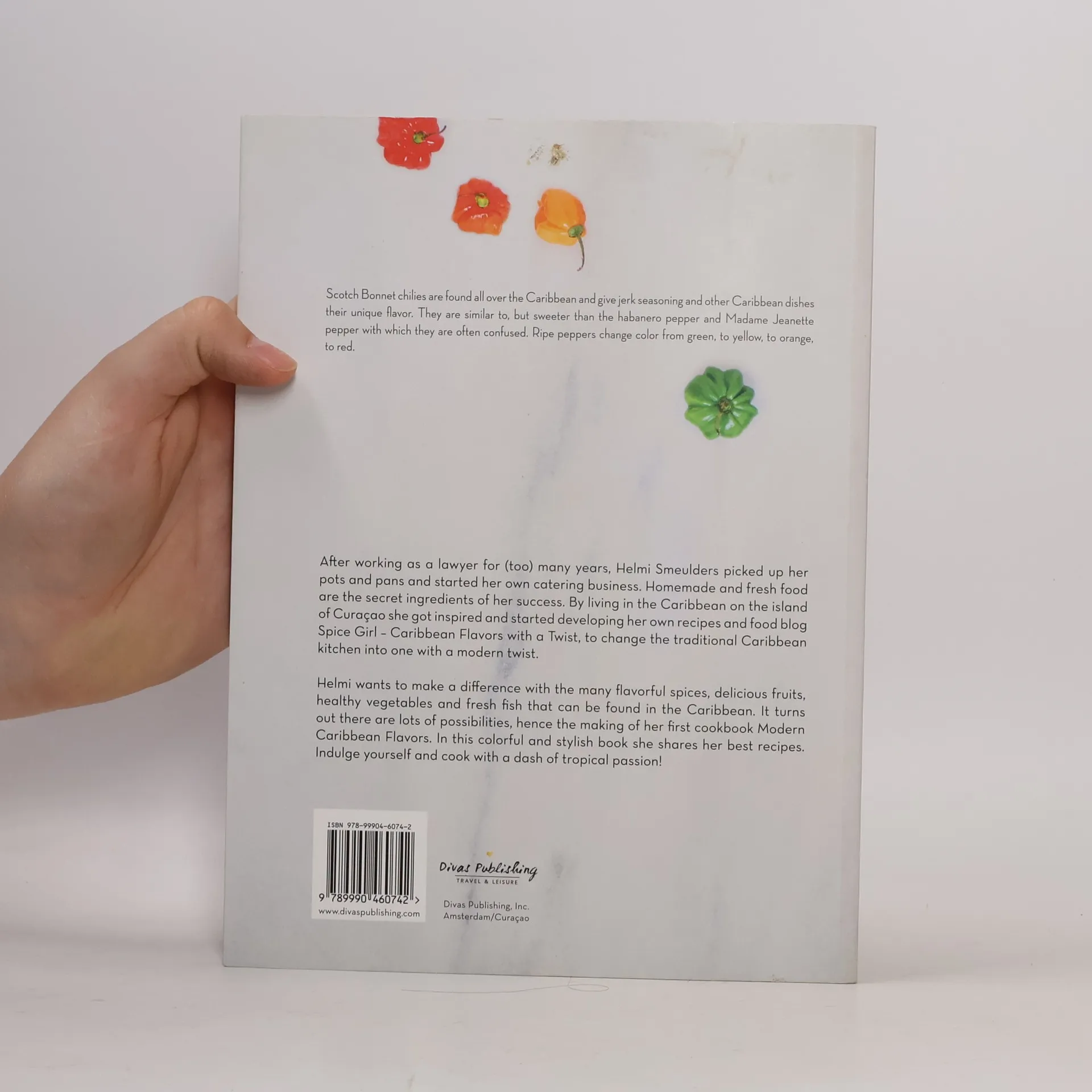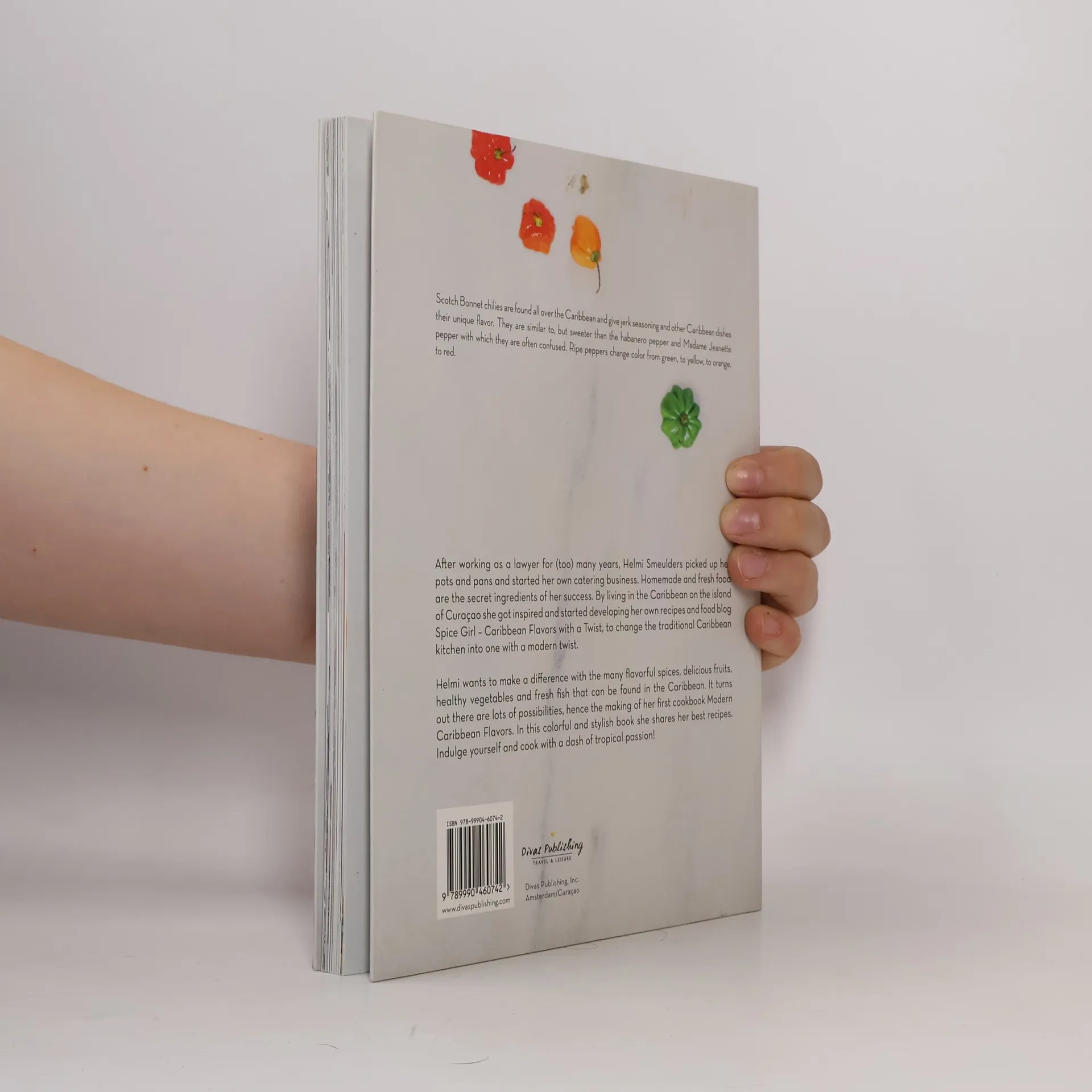 After working as a lawyer for (too) many years, Helmi Smeulders picked up her pots and pans and started her own catering business. Homemade and fresh food are the secret ingredients of her success. By living in the Caribbean on the island of Curaçao she got inspired and started developing her own recipes and food blog ‘Spice Girl – Caribbean Flavors with a Twist’, to change the traditional Caribbean kitchen into one with a modern twist. Helmi wants to make a difference with the many flavorful spices, delicious fruits, healthy vegetables and fresh fish that can be found in the Caribbean. It turns out there are lots of possibilities, hence the making of her first cookbook Modern Caribbean Flavors. In this colorful and stylish book she shares her best recipes. Indulge yourself and cook with a dash of tropical passion!