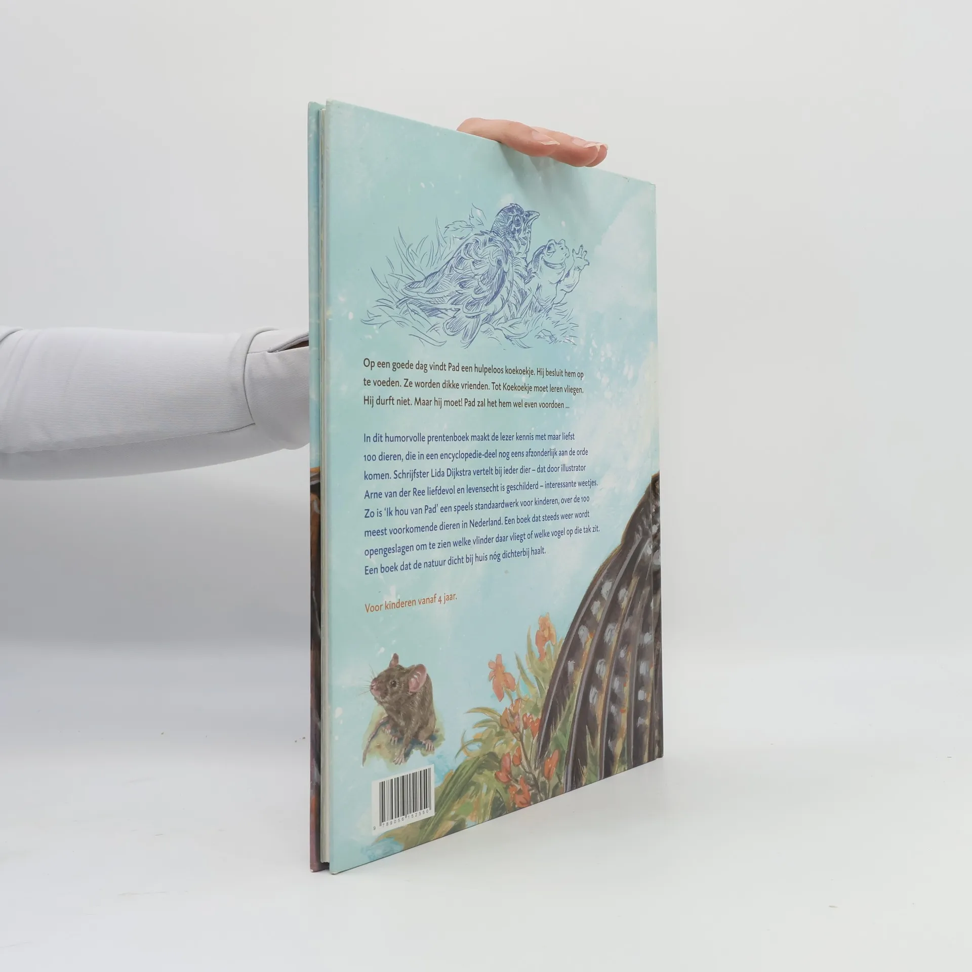 Een pad zorgt voor een koekoeksjong dat uit zijn nest is gevallen. In het tweede gedeelte van deze prentvertelling korte informatie over honderd dieren die in Nederland leven. Met veel illustraties in kleur. Vanaf ca. 6 t/m 10 jaar.