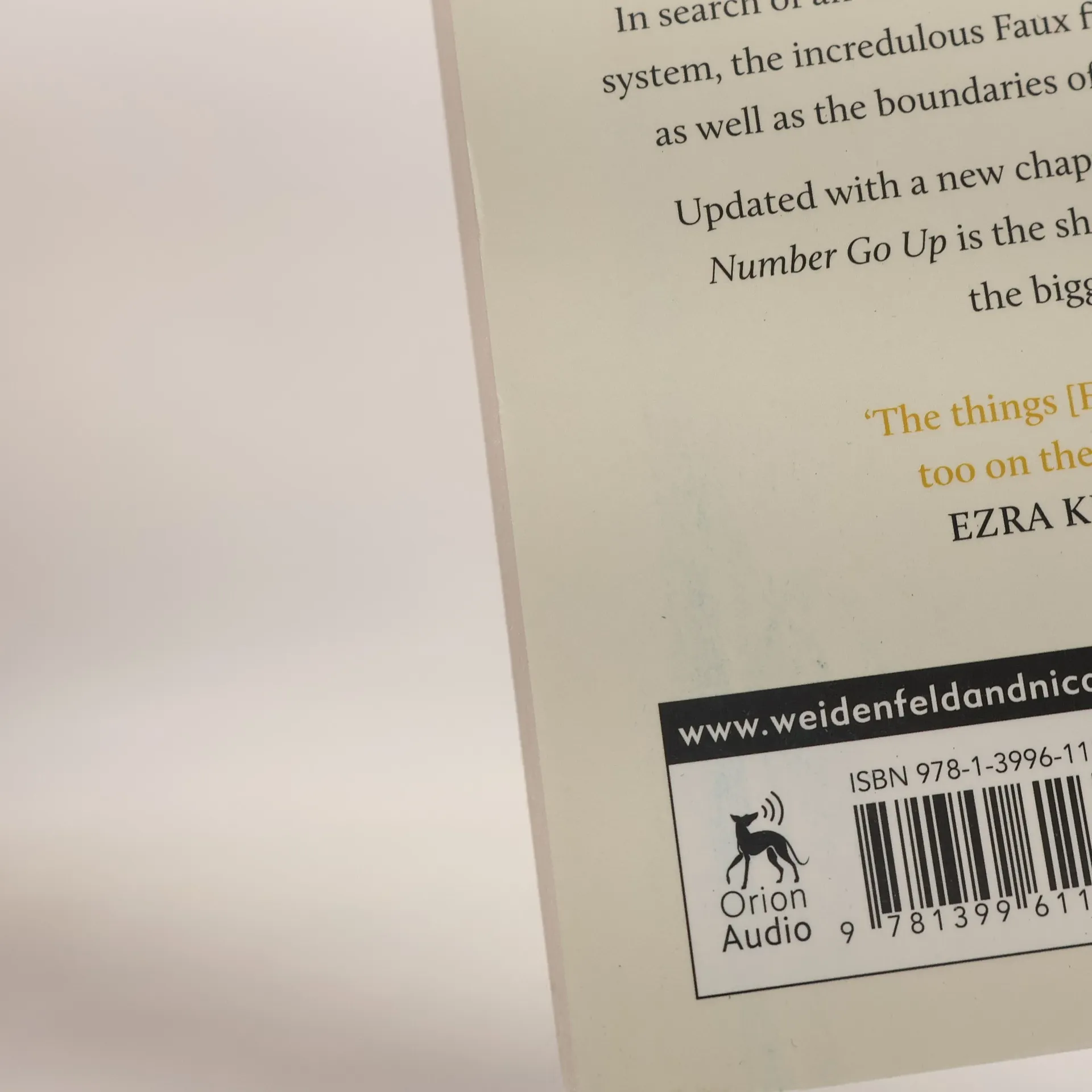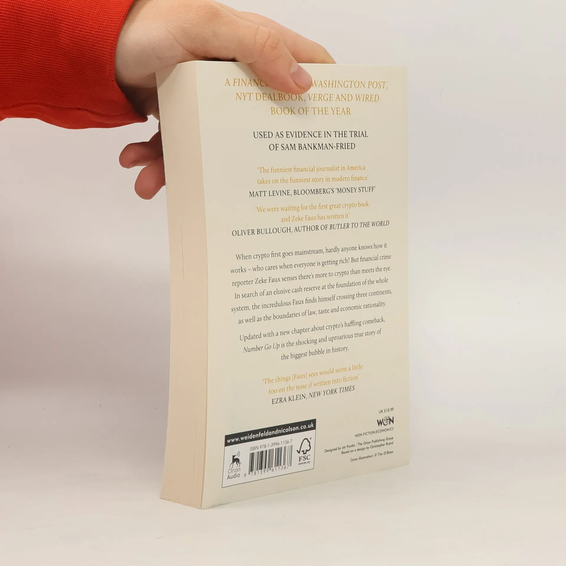 In 2021, cryptocurrency goes mainstream. Giant investment funds are buying it. Politicians endorse it. TV ads hail it as the future of money. Hardly anyone knows how it works - who cares when everyone is getting rich? But financial crime reporter Zeke Faux cares: even in fraud, there are standards. In the Bahamas, schlubby billionaire wunderkind Sam Bankman-Fried tells him how he will use his fortune to save the world. In Cambodia, a spam text unearths a horrifying slavery ring fuelled by crypto. Faux buys a $20,000 cartoon of a mutant ape to gain access to a festival headlined by Snoop Dogg, and talks his way onto the yacht of a riddling crypto founder/former child actor (The Mighty Ducks, 1992) who was among the first to see the power of imaginary treasure. In search of an elusive cash reserve at the foundation of the whole system, the incredulous Faux finds himself crossing three continents, as well as the boundaries of law, taste and economic rationality. Shocking and uproarious, Number Go Up is the essential chronicle of a $3 trillion delusion, the greatest bubble in history.[Bokinfo].