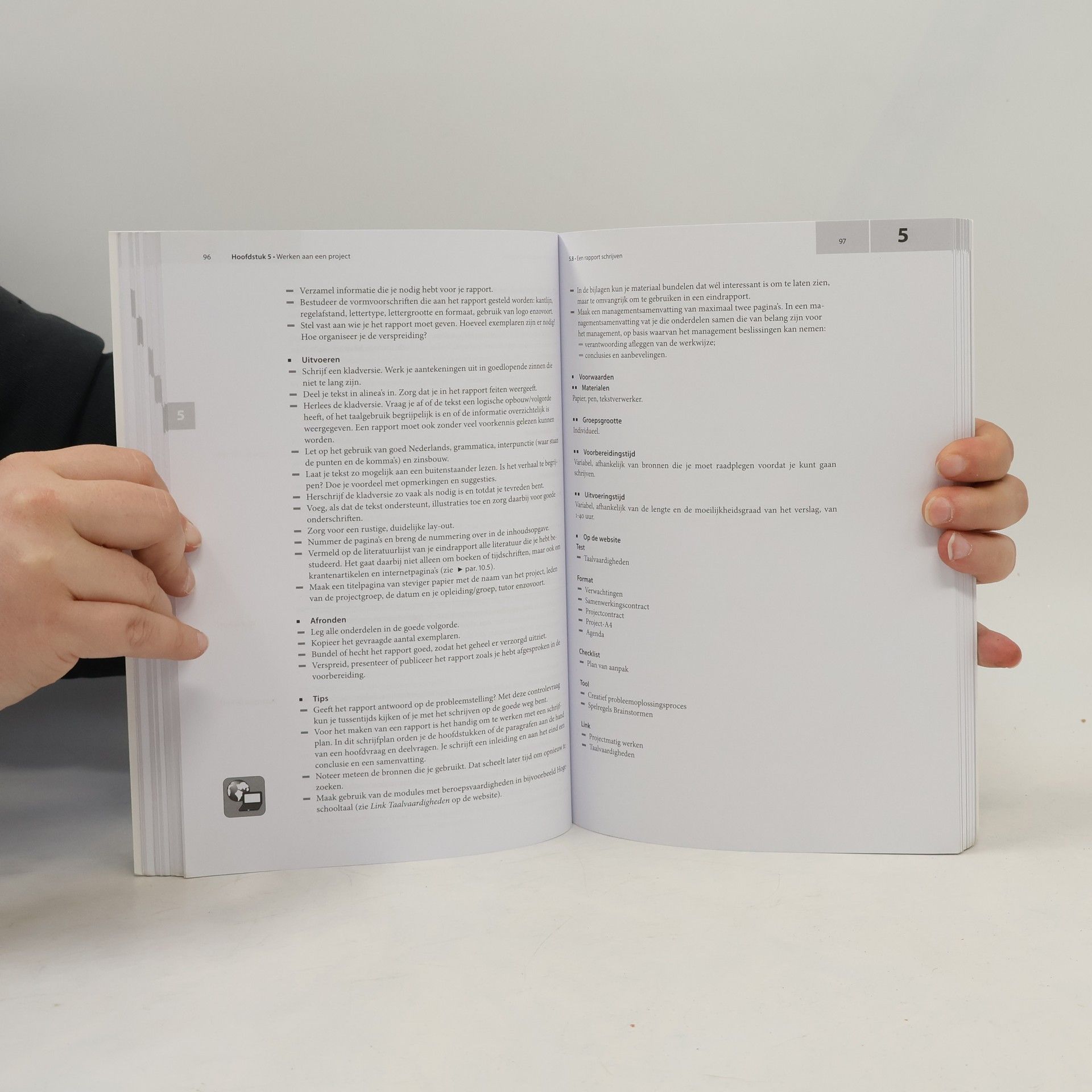 In dit handboek staan 74 verschillende leeractiviteiten met bijbehorende werkwijzen. Het biedt richtlijnen voor de voorbereiding van projecten, presentaties, tentamens en stages, en leert je hoe je constructieve feedback kunt geven. Elke activiteit is uitgewerkt met inhoud, doel en stappenplan, en beantwoordt vragen over samenwerken, studeren en projectmatig werken. Daarnaast vind je tips om fouten te voorkomen en om variatie en diepgang in je activiteiten aan te brengen. Het handboek sluit aan bij actuele onderwijsontwikkelingen, zoals digitale toepassingen en competentiegericht opleiden. Er is aandacht voor literatuurstudie, tentamenvoorbereiding, werken in een elektronische leeromgeving, onderzoek en portfolioverzameling. Zowel individueel leren als samenwerken komen aan bod. Met deze tweede herziene druk leer je op een actieve manier voor je toekomstige beroep. De speciaal ontwikkelde website biedt digitale en gebruiksvriendelijke ondersteuning. Dit handboek is een waardevol hulpmiddel tijdens je hele studie, bij het uitvoeren van opdrachten op school en tijdens je stage. Kortom, het is een onmisbaar naslagwerk!