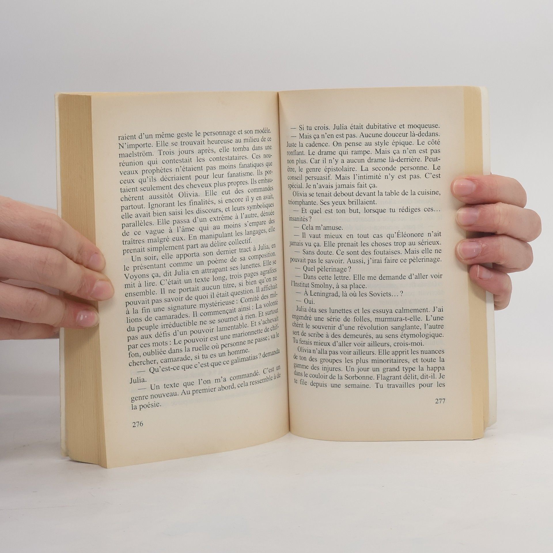 «Nous étions quatre pour traverser le siècle fou. À toi l'héritage. Voici le testament qu'elles te laissent. C'est un capital immatériel : ferveur et solitude, rien d'autre.Les moteurs se mirent à ronfler. Le steward passa avec son boniment et ses gilets de sauvetage. L'avion roula très doucement et longea des forêts vert clair, surmontées d'un ciel boréal. À quoi ressemble mon pays ? demanda Constance avec inquiétude. Je ne te cacherai pas un détail, dit Flore, qui sortit son portefeuille de son sac, et du portefeuille, sous une masse de cartes d'identité et de sauf-conduits, une lettre jaunie datée du 24 octobre 1956. C'est l'histoire de Julia. Quand tu la connaîtras, tu n'auras plus peur de rien.»