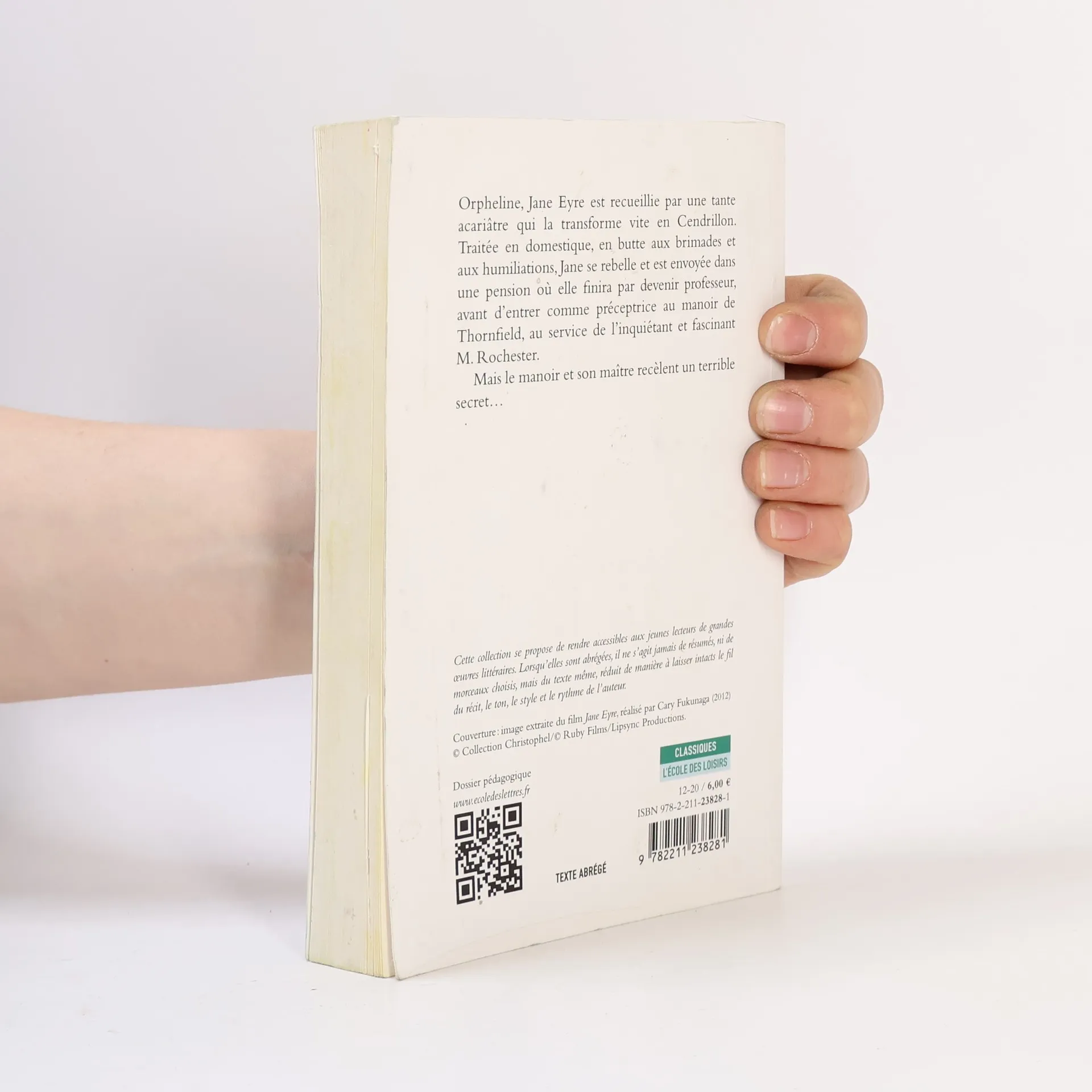 Jane Eyre, une jeune orpheline d'une dizaine d'années, est recueillie par une tante acariâtre qui la transforme vite en Cendrillon. Traitée comme une domestique, en butte aux brimades et aux humiliations, Jane se rebelle et est envoyée dans une pension où elle finira par devenir professeur, avant d'entrer comme préceptrice au manoir de Thornfield, sous les ordres de l'inquiétant et fascinant M. Rochester. Mais le manoir et son maître recèlent un terrible secret...Coups de théâtre, rebondissements inattendus, hurlements de rire terrifiants dans un manoir hanté par une présence menaçante et cachée, incendies criminels, histoire d'amour maudit, fuites éperdues dans la lande ont assuré à Jane Eyre un succès immédiat et durable. La lecture de certains passages de Jane Eyre est recommandée dans les programmes en classe de 5e pour illustrer l'entrée « Avec autrui : famille, amis, réseaux ». La lecture d'un roman autobiographique est recommandée en 5ème et 3 ème (« Se raconter, se représenter ...)12/14 ans.