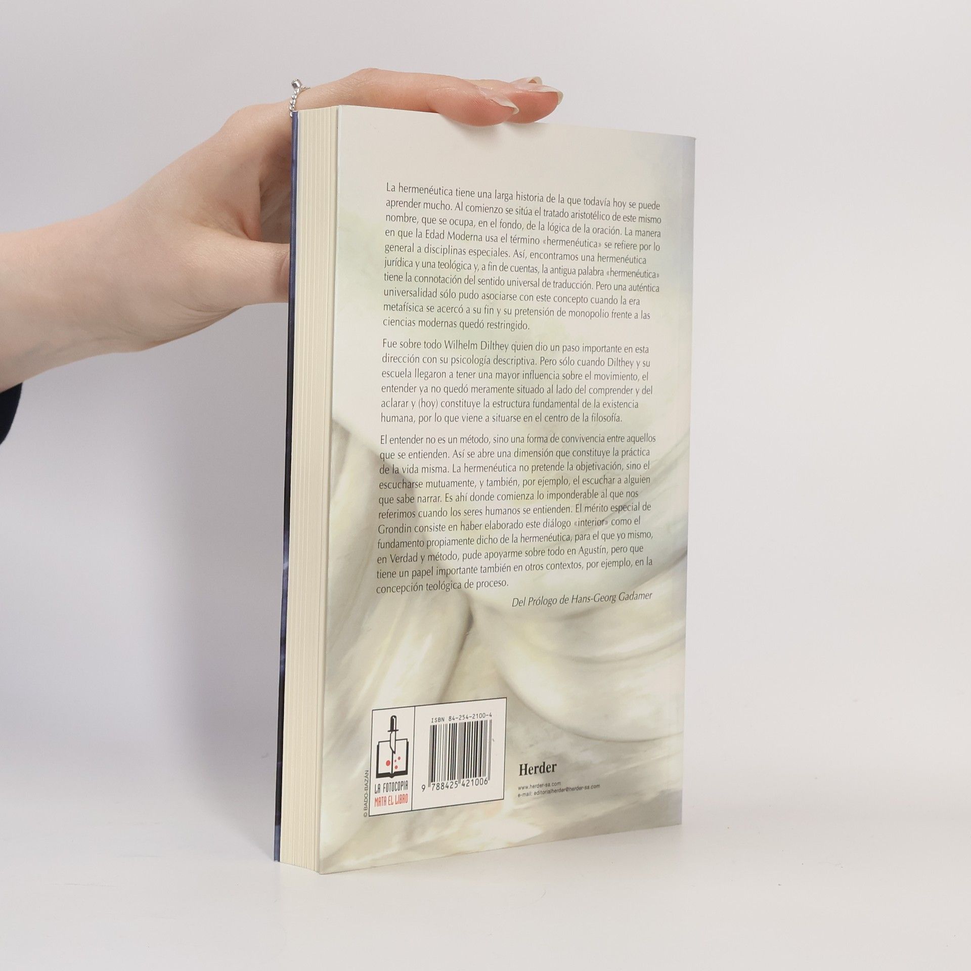 Introducción a la hermenéutica filosófica, Jean Grondin, Hans Georg Gadamer, Ángela Ackermann Pilári
