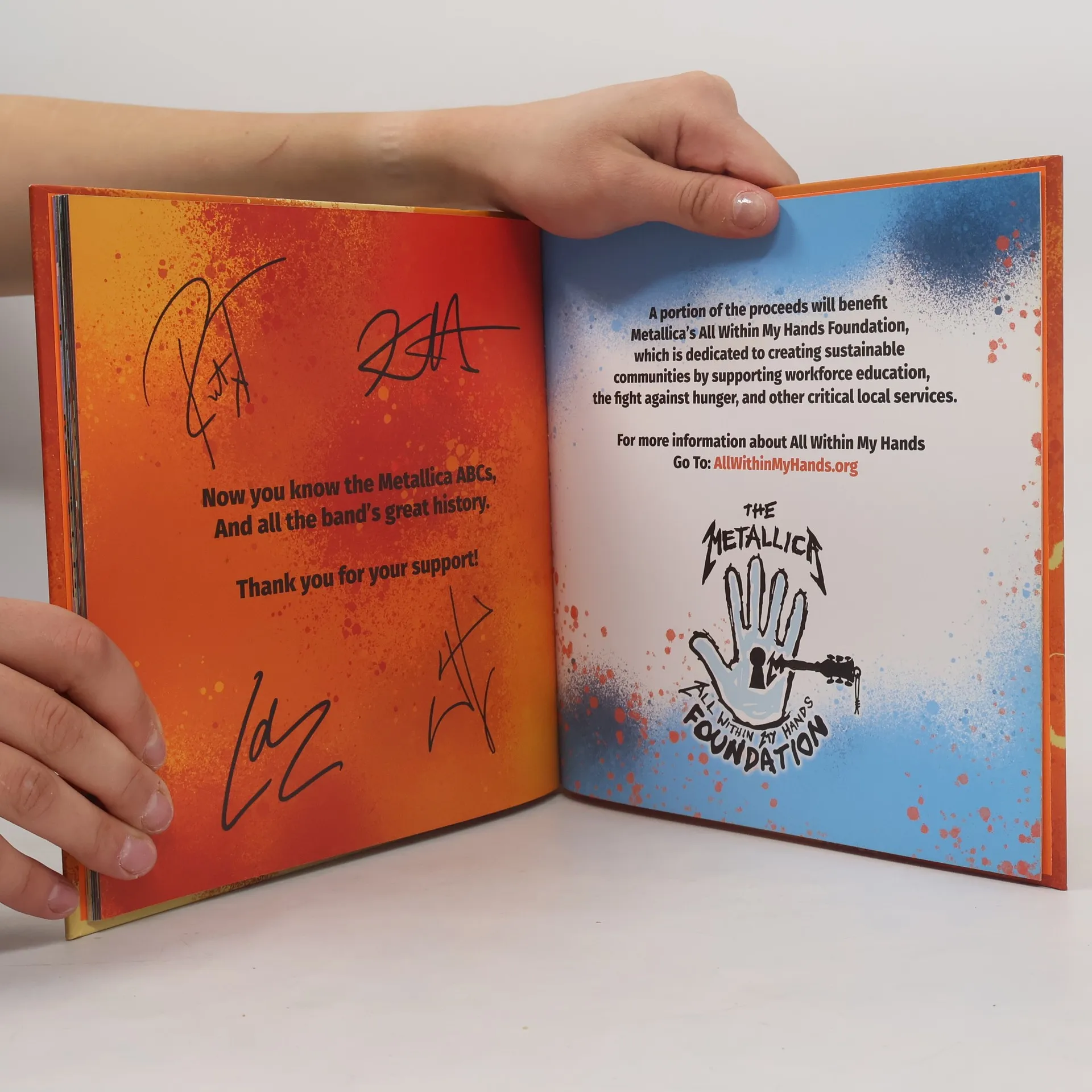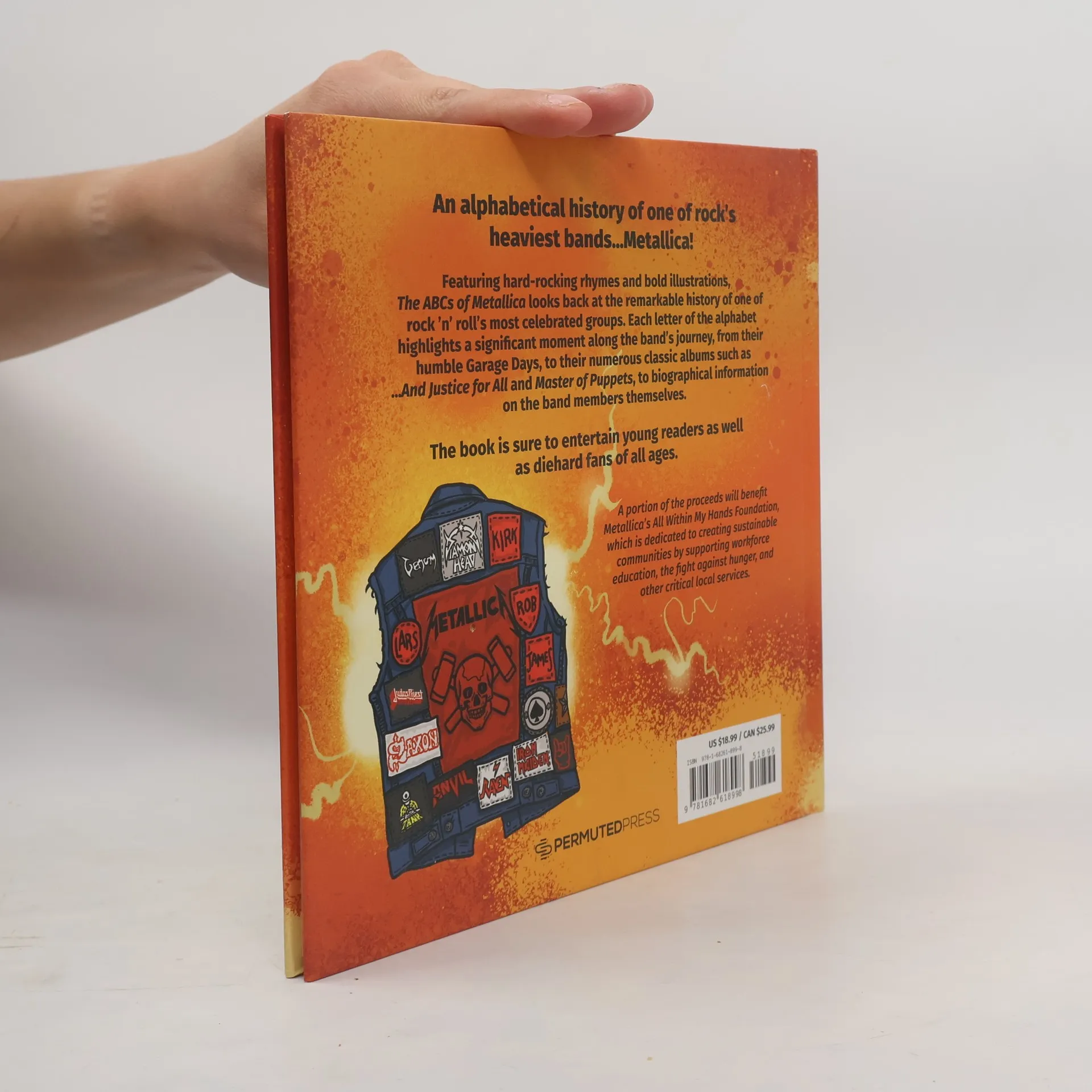 An alphabetical history of one of rock’s heaviest bands…Metallica! Featuring hard-rocking rhymes and bold illustrations, The ABCs of Metallica looks back at the remarkable history of one of rock ‘n’ roll’s most celebrated groups. Each letter of the alphabet highlights a significant moment along the band’s journey, from their humble Garage Days, to their numerous classic albums such as ...And Justice for All and Master of Puppets, to biographical information on the band members themselves. The book is sure to entertain young readers as well as diehard fans of all ages. A portion of the proceeds will benefit Metallica’s All Within My Hands Foundation, which is dedicated to creating sustainable communities by supporting workforce education, the fight against hunger, and other critical local services.