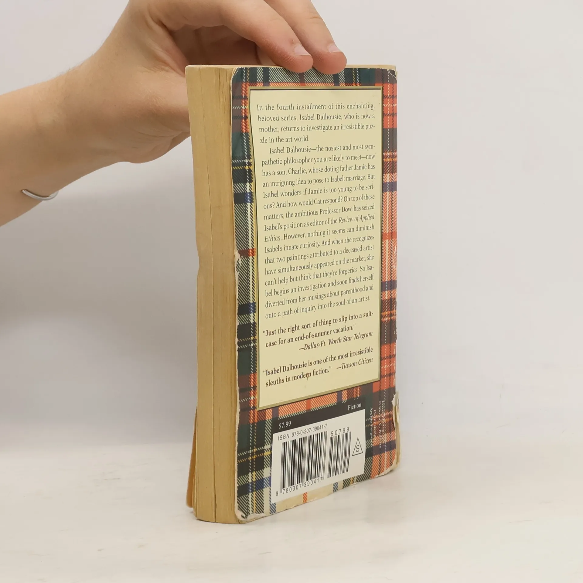 Full-time philosopher and occasional sleuth Isabel Dalhousie, now the mother of a baby boy, is getting used to the new rhythms of her life, caring for little Charlie with the sometimes unsettling aid of her forthright housekeeper, Grace, having dinners with Charlie's father, Jamie, and tending as usual to submissions to the Review of Applied Ethics. But Isabel is deeply unsettled when she receives a letter telling her that she is soon to be replaced as editor of the Review by Christopher Dove, an ambitious academic at a London university, and she considers a variety of ways of dealing with this unwelcome news. And her niece, Cat, who a couple of years before had rejected Jamie and broken his heart, is now furious at Isabel for having stolen him away. Isabel's insatiable curiosity—or what Jamie sees as her tendency toward meddling—is peaked when she learns some odd details regarding two paintings by a Scottish artist that have come onto the auction market, and she begins to think that the paintings might be forgeries. Her investigation takes her to the beautiful Isle of Jura, where she finds some recent traces of the painter and learns of his apparent suicide in the fabled whirlpool called the Corryvreckan. A visit to the painter’s widow brings a surprising realization, one that contributes to her musings throughout the story on mothers, fathers, and sons.