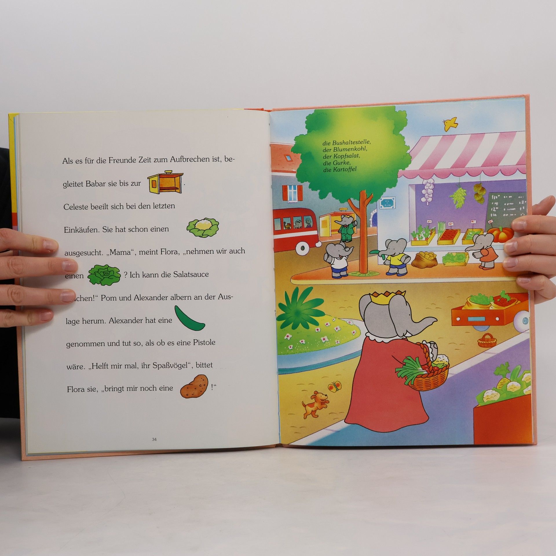 Join Babar and his friends for a shopping trip and build German vocabulary!