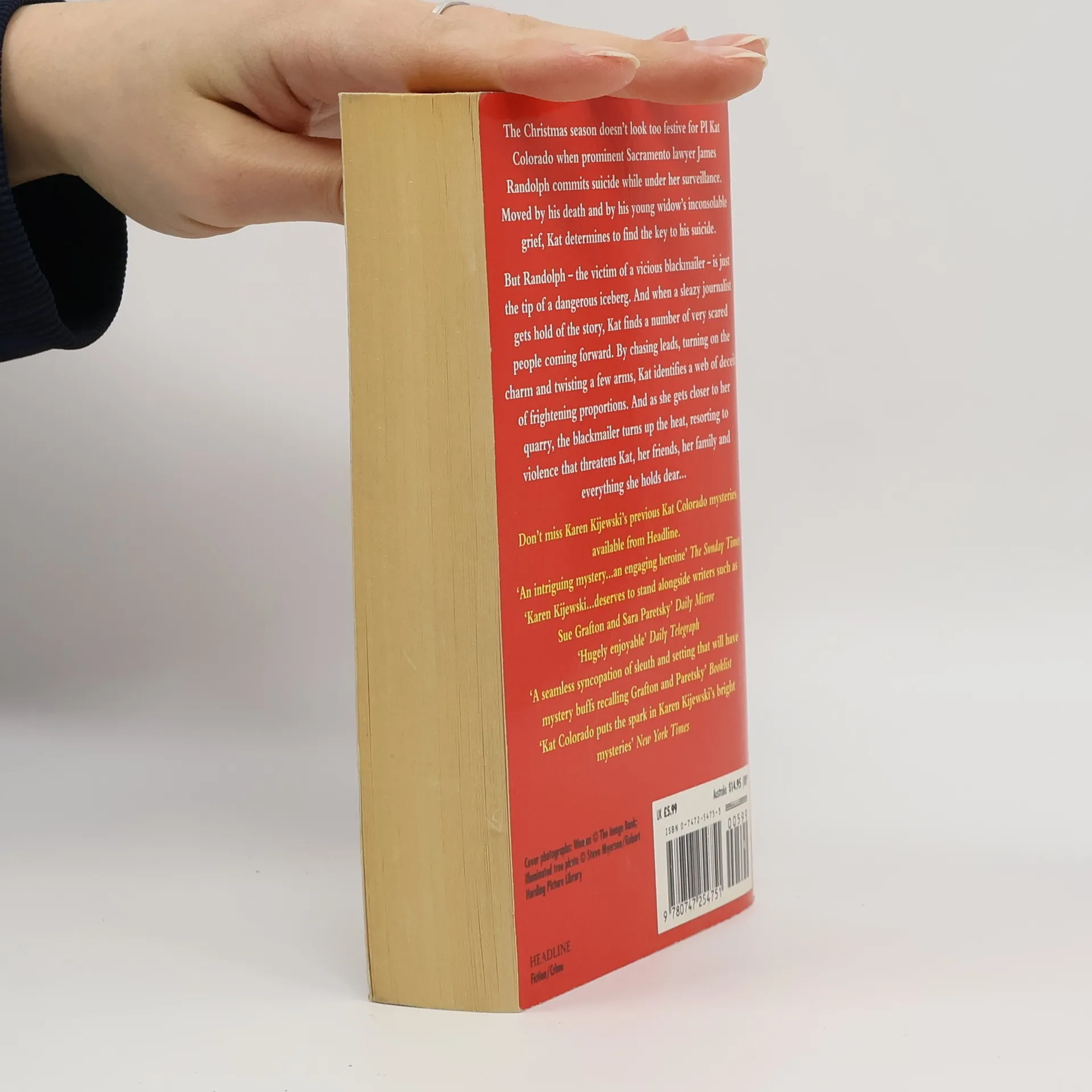 The Christmas season doesn't look too festive for PI Kat Colorado when prominent Sacramento lawyer James Randolph commits suicide while under her surveillance. Moved by his death and by his young widow's inconsolable grief, Kat determines to find the key to his suicide. But Randoloph - the victim of a vicious blackmailer - is just the tip of a dangerous iceberg. And when a sleazy journalist gets hold of the story, Kat finds a number of very scared people coming forward. By chasing leads, turning on the charm and twisting a few arms, Kat identifies a web of deceit of frightening proportions. And as she gets closer to her quarry, the blackmailer turns up the heat, resorting to violence that threatens Kat, her friends, her family and everything she holds dear...