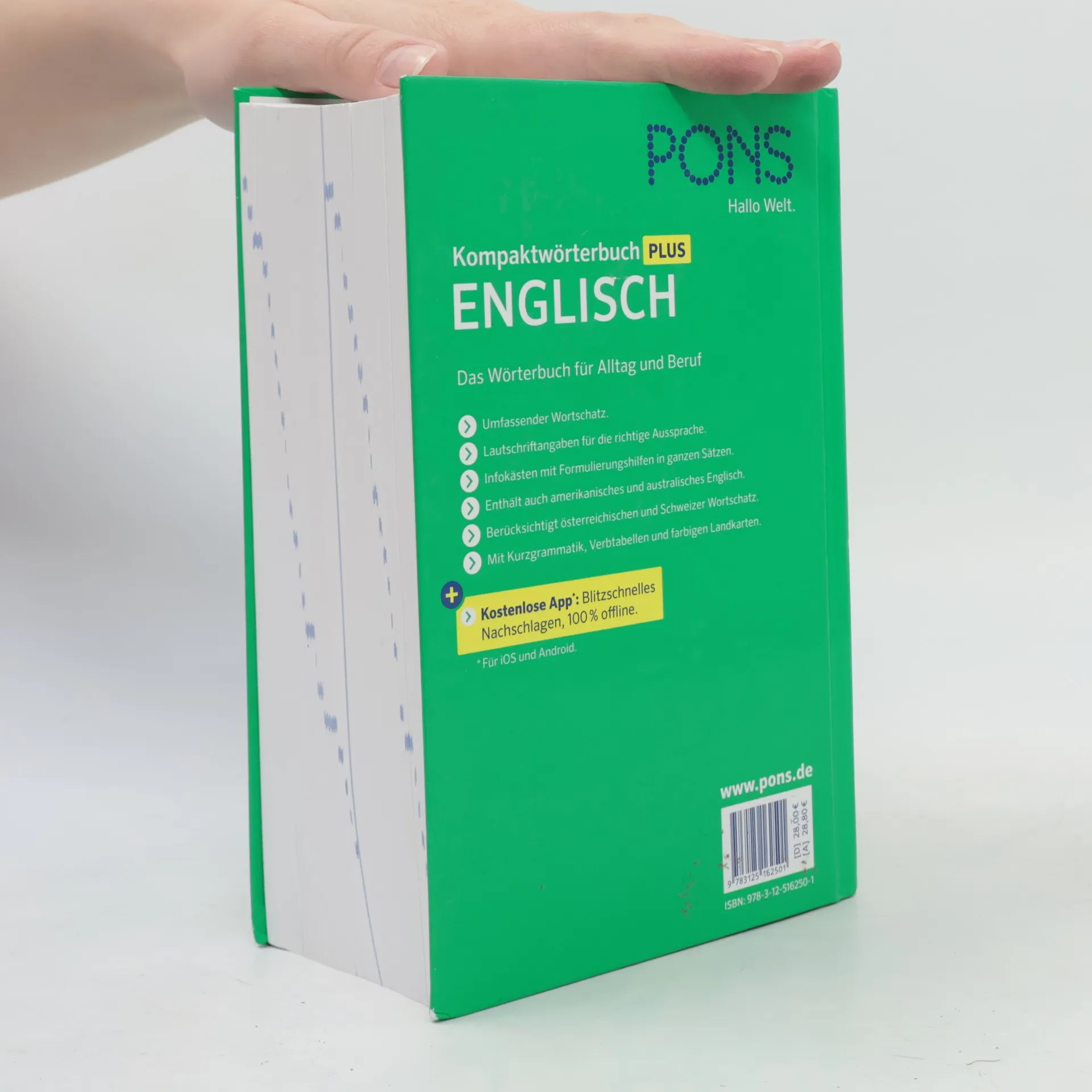 Umfassender Wortschatz, darunter topaktuelle Wörter wie z. B. noob und photobomb, Ladekabel und sich fremdschämen. Lautschriftangaben für die richtige Aussprache. Infokästen mit Formulierungshilfen in ganzen Sätzen. Enthält auch amerikanisches und australisches Englisch. Berücksichtigt österreichischen und Schweizer Wortschatz. Mit Kurzgrammatik und Verbtabellen. Inklusive Wörterbuch-App für 2 Jahre!: Die perfekte Ergänzung zum Buch für das Nachschlagen auf Smartphone und Tablet. Die App ist zu 100 % offline nutzbar und eignet sich für Android und iOS. Mit Code im Buch erhalten Sie für 24 Monate Zugang zur PONS Schule-App ab dem Zeitpunkt der Aktivierung. Die Aktivierung ist mindestens für den Zeitraum von 36 Monaten nach Erscheinen der aktuellen Auflage möglich.