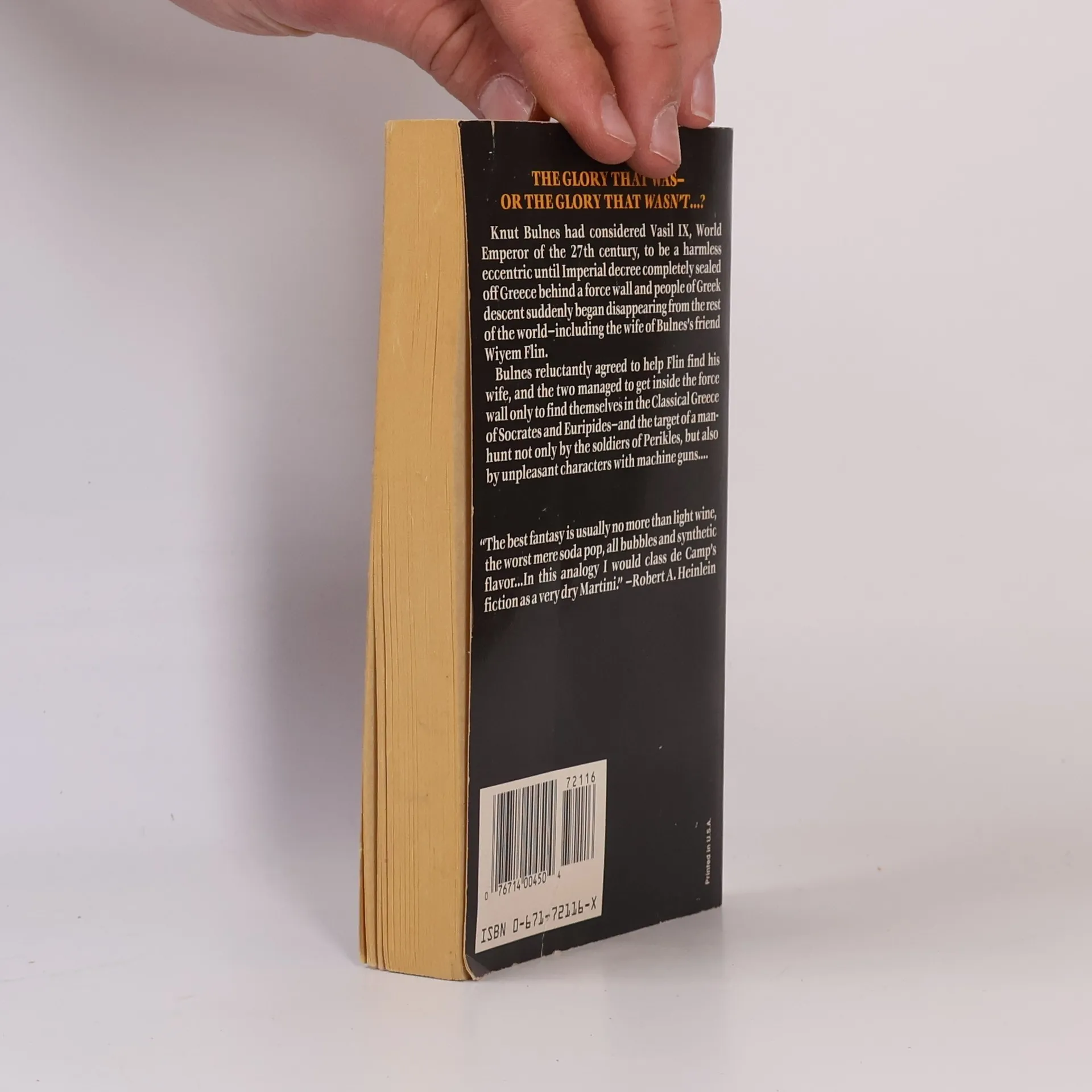 When the World Emperor of the twenty-seventh century seals off Greece behind a force wall and Wiyem Flin's wife soon disappears, Knut Bulnes agrees to help look behind the wall for the woman, and the two find themselves in Classical Greece. Cover illustration: Doug Anderson