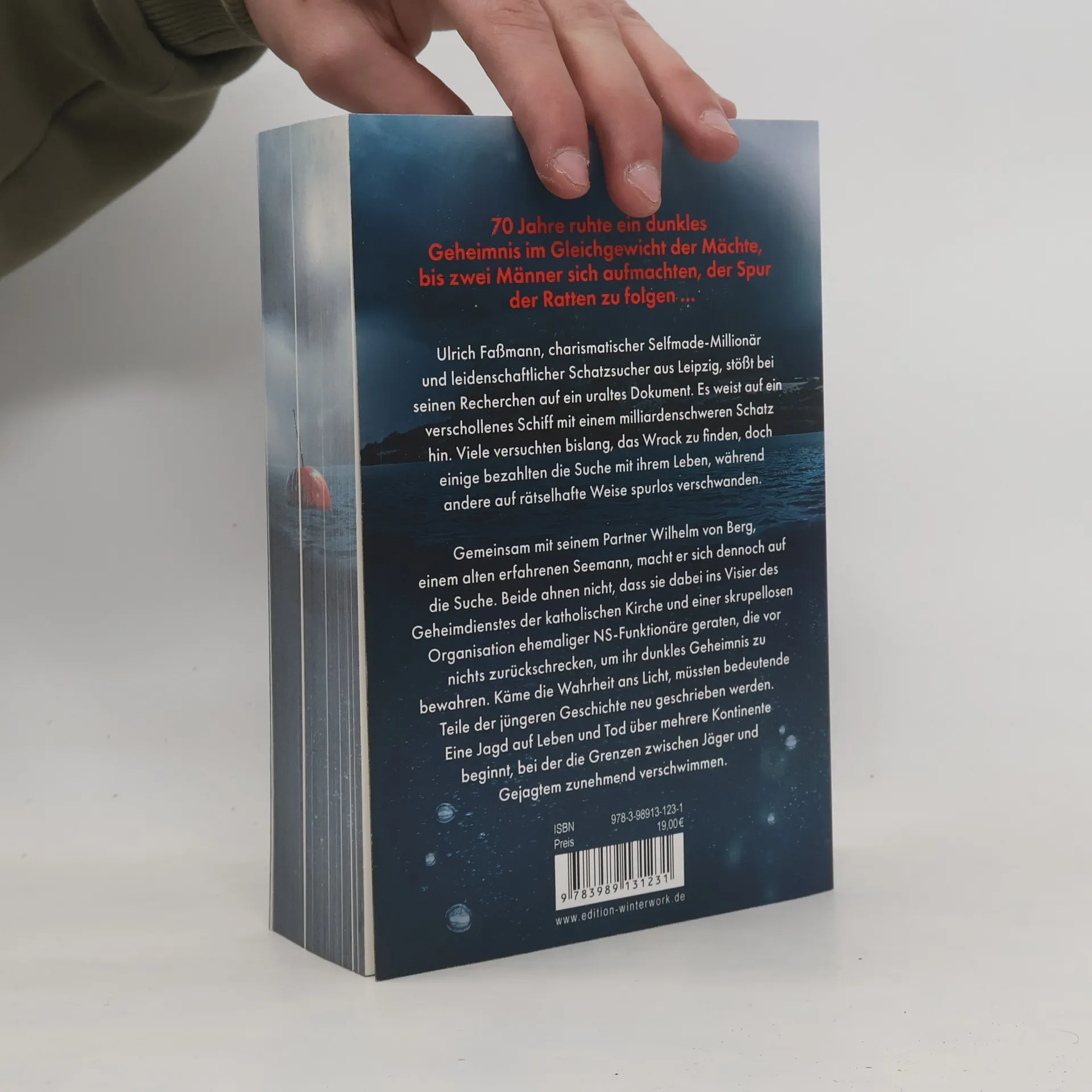 70 Jahre ruhte ein dunkles Geheimnis im Gleichgewicht der Mächte, bis zwei Männer sich aufmachten, der Spur der Ratten zu folgen … Ulrich Faßmann, charismatischer Selfmade-Millionär und leidenschaftlicher Schatzsucher aus Leipzig, stößt bei seinen Recherchen auf ein uraltes Dokument. Es weist auf ein verschollenes Schiff mit einem milliardenschweren Schatz hin. Viele versuchten bislang, das Wrack zu finden, doch einige bezahlten die Suche mit ihrem Leben, während andere auf rätselhafte Weise spurlos verschwanden. Gemeinsam mit seinem Partner Wilhelm von Berg, einem alten erfahrenen Seemann, macht er sich dennoch auf die Suche. Beide ahnen nicht, dass sie dabei ins Visier des Geheimdienstes der katholischen Kirche und einer skrupellosen Organisation ehemaliger NS-Funktionäre geraten, die vor nichts zurückschrecken, um ihr dunkles Geheimnis zu bewahren. Käme die Wahrheit ans Licht, müssten bedeutende Teile der jüngeren Geschichte neu geschrieben werden. Eine Jagd auf Leben und Tod über mehrere Kontinente beginnt, bei der die Grenzen zwischen Jäger und Gejagtem zunehmend verschwimmen.
