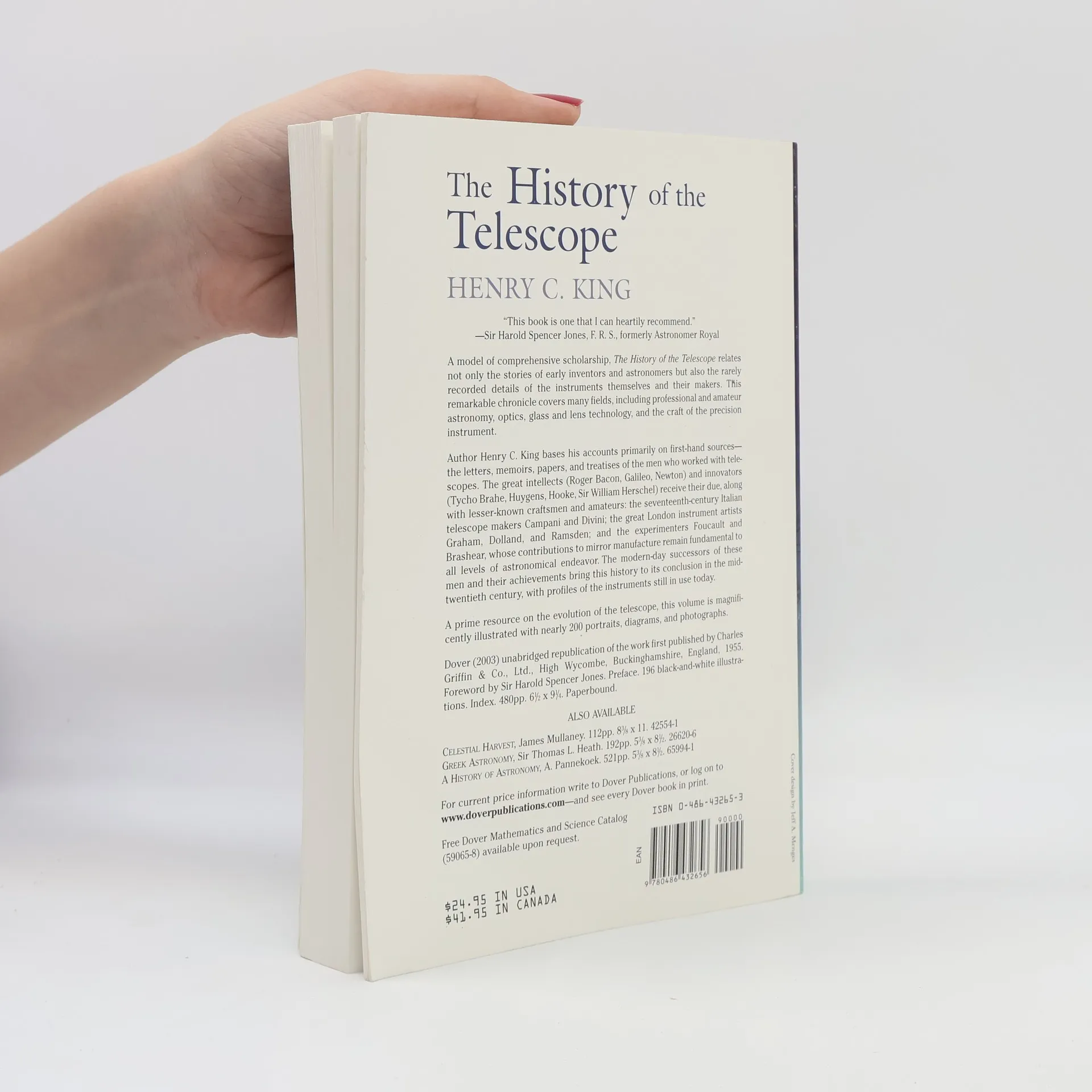 "This book is one that I can heartily recommend." — Sir Harold Spencer Jones, F. R. S., formerly Astronomer RoyalA model of comprehensive scholarship, The History of the Telescope relates not only the stories of early inventors and astronomers but also the rarely recorded details of the instruments themselves and their makers. This remarkable chronicle covers many fields, including professional and amateur astronomy, optics, glass and lens technology, and the craft of the precision instrument.Author Henry C. King bases his accounts primarily on first-hand sources — the letters, memoirs, papers, and treatises of the men who worked with telescopes. The great intellects (Roger Bacon, Galileo, Newton) and innovators (Tycho Brahe, Huygens, Hooke, Sir William Herschel) receive their due, along with lesser-known craftsmen and the seventeenth-century Italian telescope makers Campani and Divini; the great London instrument artists Graham, Dolland, and Ramsden; and the experimenters Foucault and Brashear, whose contributions to mirror manufacture remain fundamental to all levels of astronomical endeavor. The modern-day successors of these men and their achievements bring this history to its conclusion in the mid-twentieth century, with profiles of the instruments still in use today.A prime resource on the evolution of the telescope, this volume is magnificently illustrated with nearly 200 portraits, diagrams, and photographs.