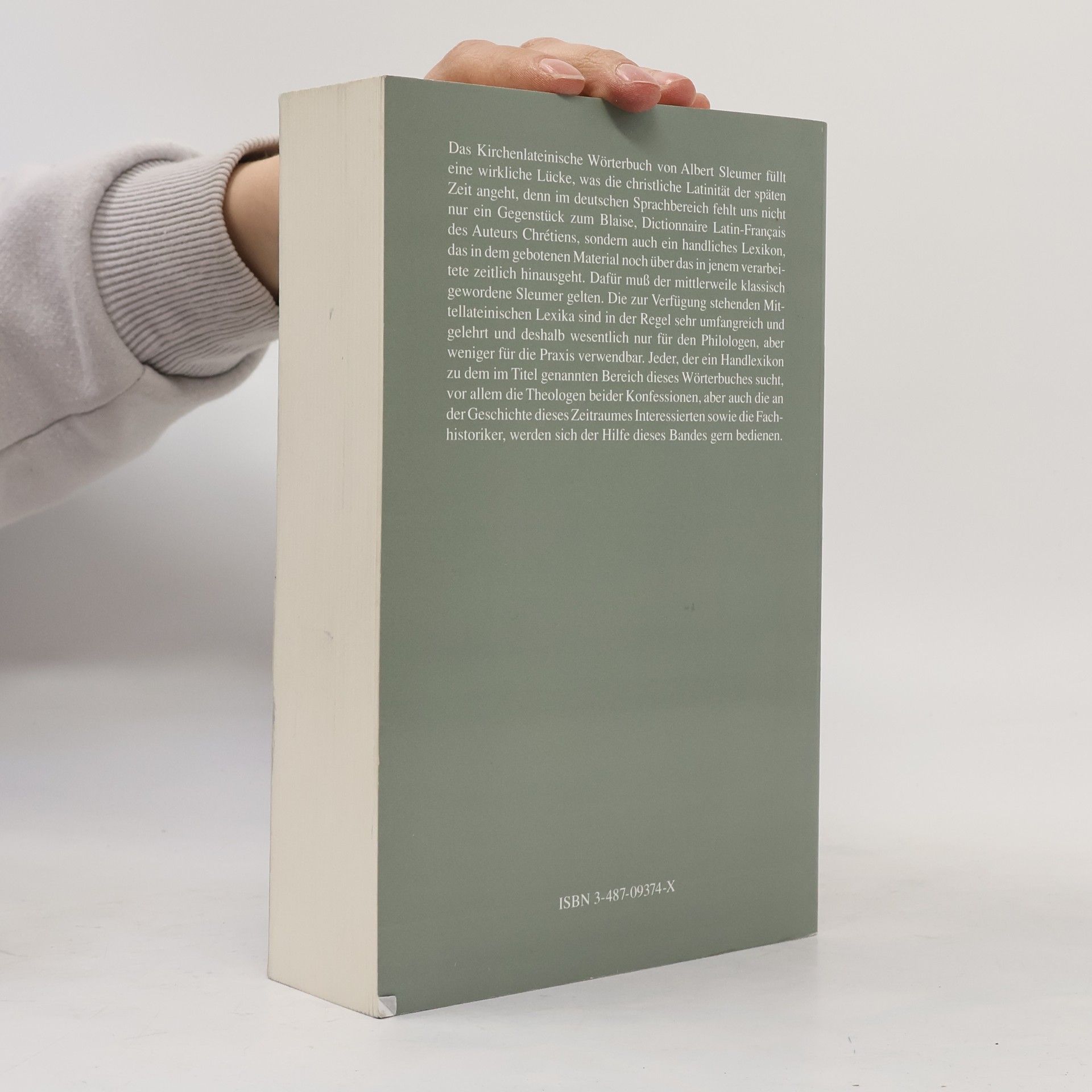 Das Kirchenlateinische Wörterbuch von Albert Sleumer füllt eine wirkliche Lücke, was die christliche Latinität der späten Zeit angeht, denn im deutschen Sprachbereich fehlt uns nicht nur ein Gegenstück zum Blaise, Dictionniare Latin-Français des Auteurs Chrétiens, sondern auch ein handliches Lexikon, das in dem gebotenen Material noch über das in jenem verarbeitete zetilcih hinausgeht. Dafür muss der mittlerweile klassisch gewordene Sleumer gelten. Die zur Verfügung stehenden Mittellateinischen Lexika sind in der Regel sehr umfangreich und gelehrt und deshalb wesentlich nur für den Philologen, aber weniger für die Praxis verwendbar. Jeder, der ein Handlexikon zu dem im Titel genannten Bereich des Wörterbuches sucht, vor allem die Theologen beider Konfessionen, aber auch die an der Geschichte dieses Zeitraumes Interessierten sowie die Fachhistoriker, werden sich der Hilfe dieses Bandes gern bedienen. Albert Sleumer's Krichenlateinisches Wärterbuch fills a gap in the study of later Christian Latin literature, especially since German speaking scholars lacked both a work comparable to Blaise's Dictionnaire Latin-Français des Auteurs Chrétiens and a handy dictionary which goes beyond the material included in Blaise's work. Sleumer's dictionary has thus become a classic. The available Medieval Latin dictionaries are as a rule very extensive and scholarly and of use more to the scholar than in practical work. The reprint of this volume will be welcomed by all interested in the field, especially theologians of all confessions, but also by students of the Middle Ages and Church historians.