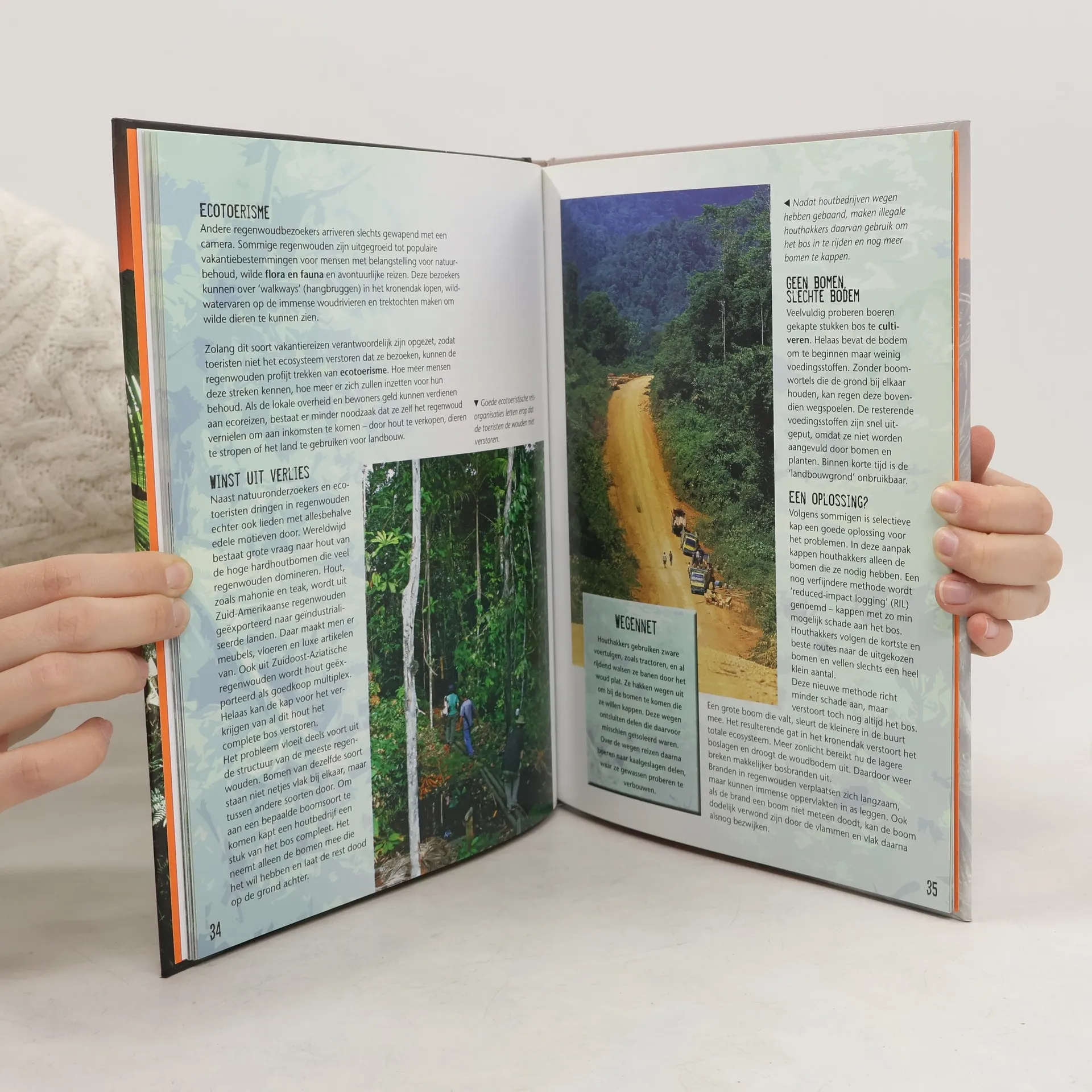 Wat zijn tropische regenwouden, welke dieren komen er voor, wie gingen er heen op ontdekkingsreis, hoe doet men onderzoek en hoe kunnen we deze gebieden beschermen? Met een geografische kaart en kleurenfoto's. Vanaf ca. 11 jaar.