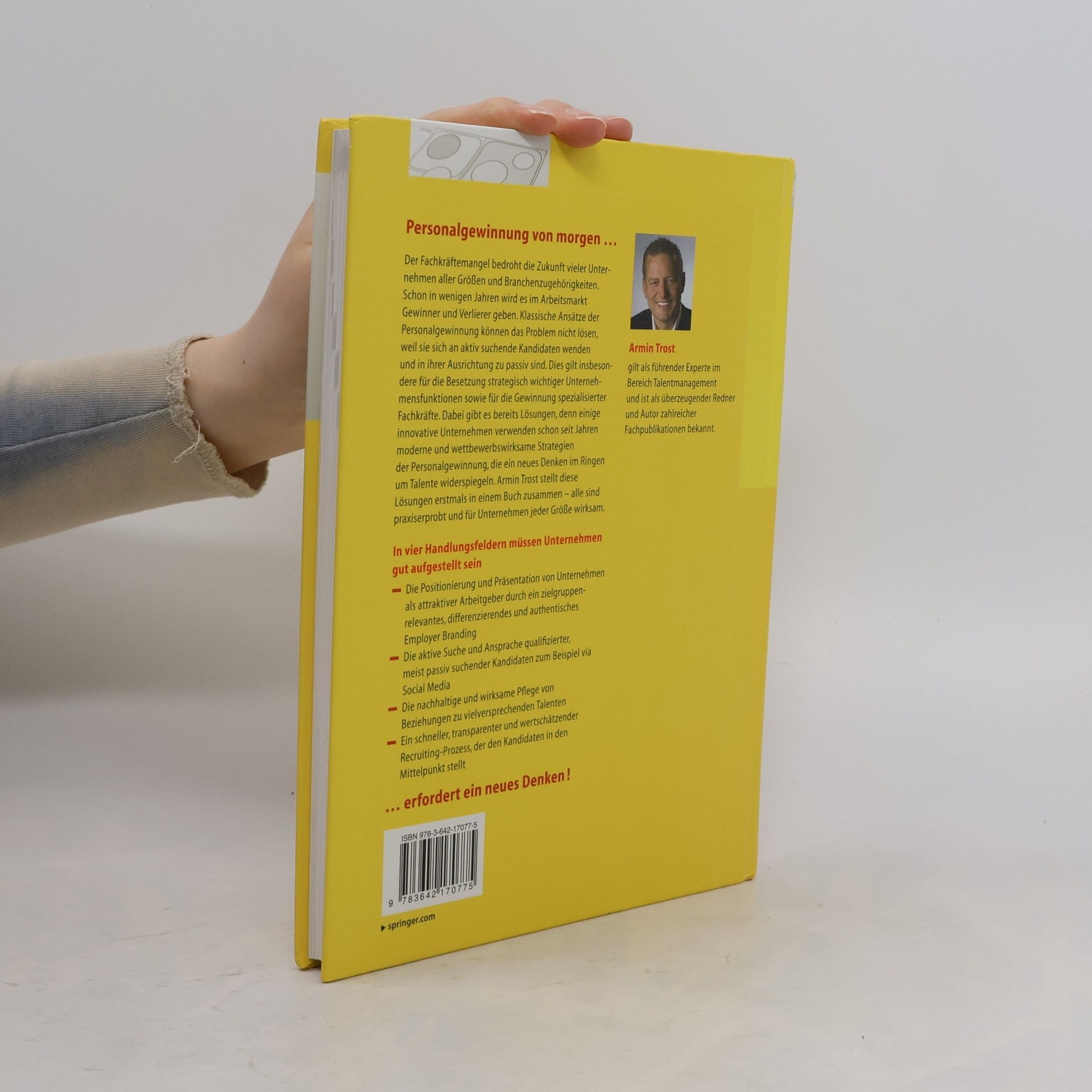 Der zunehmende Fachkräftemangel bedroht die Zukunft vieler Unternehmen aller Größen und Branchenzugehörigkeiten. Klassische Ansätze der Personalgewinnung können das Problem nicht lösen, weil sie sich an aktiv suchende Kandidaten wenden und in ihrer Ausrichtung zu passiv sind. Dies gilt insbesondere für die Besetzung strategisch wichtiger Unternehmensfunktionen sowie für die Gewinnung spezialisierter Fachkräfte. Dabei gibt es bereits Lösungen, denn einige innovative Unternehmen bemühen sich schon seit Jahren um moderne und wettbewerbswirksame Strategien der Personalgewinnung. Diese finden sich allerdings nicht in klassischen Lehrbüchern der Personalwirtschaft, weil sie ein anderes, neues Denken im Ringen um Talente widerspiegeln. Dieses Buch vermittelt dieses neue Denken anschaulich mit lebhaften Fallbeispielen und liefert gleichzeitig eine strukturierte und umfassende Darstellung praxiserprobter Maßnahmen des Talent Relationship Managements. So stellt es unter anderem aktive Strategien zur Kandidatensuche und -bindung, z. B. moderne Social-Media- Ansätze, Themen wie Employer Branding und erfolgsrelevante Rahmenbedingungen in Unternehmen vor. Armin Trost gilt als führender Experte im Bereich Talentmanagement und ist als überzeugender Redner und Autor zahlreicher Fachpublikationen bekannt.