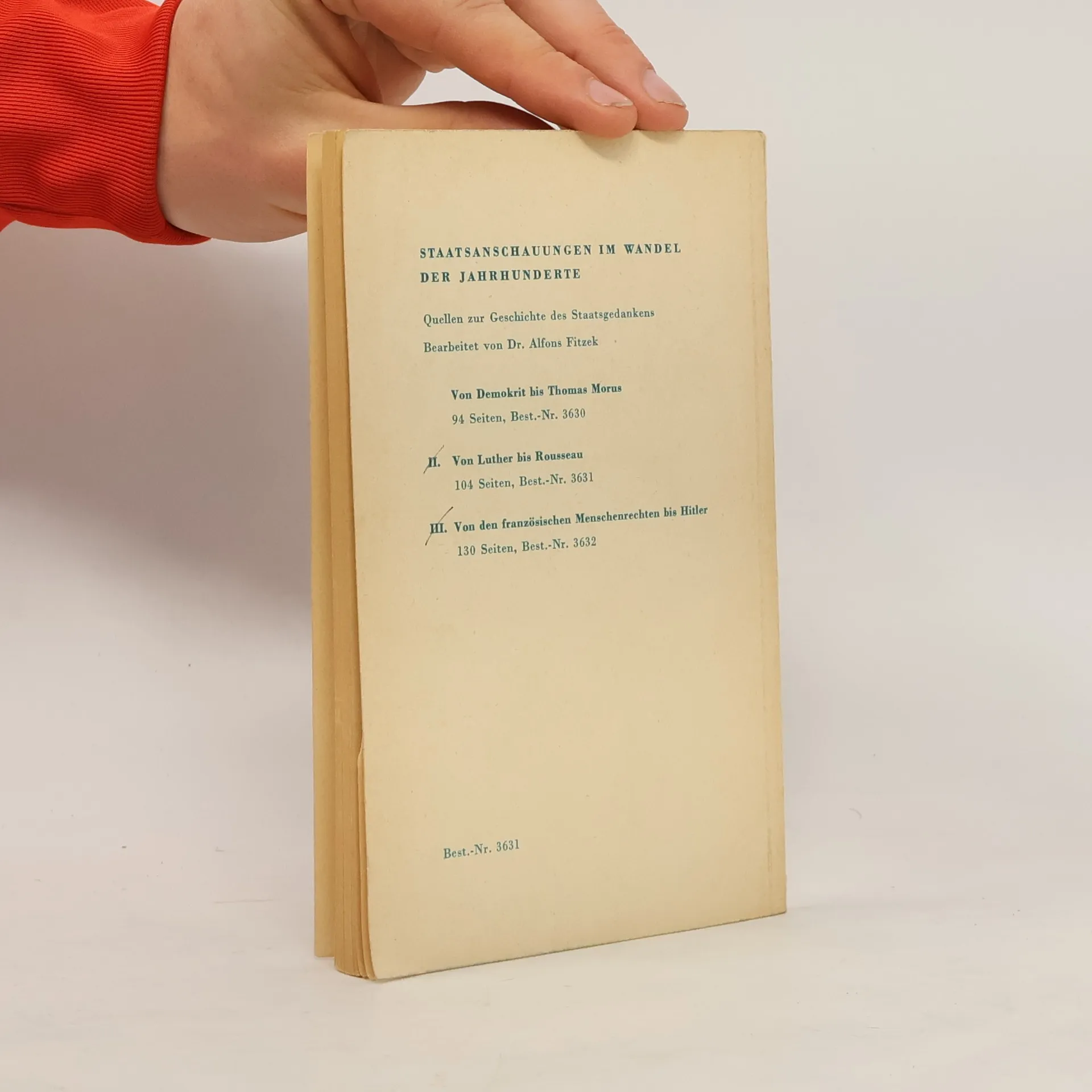 Staatsanschauungen im Wandel der Jahrhundert II. Von Luther bis Rosseau, A. Fitzek