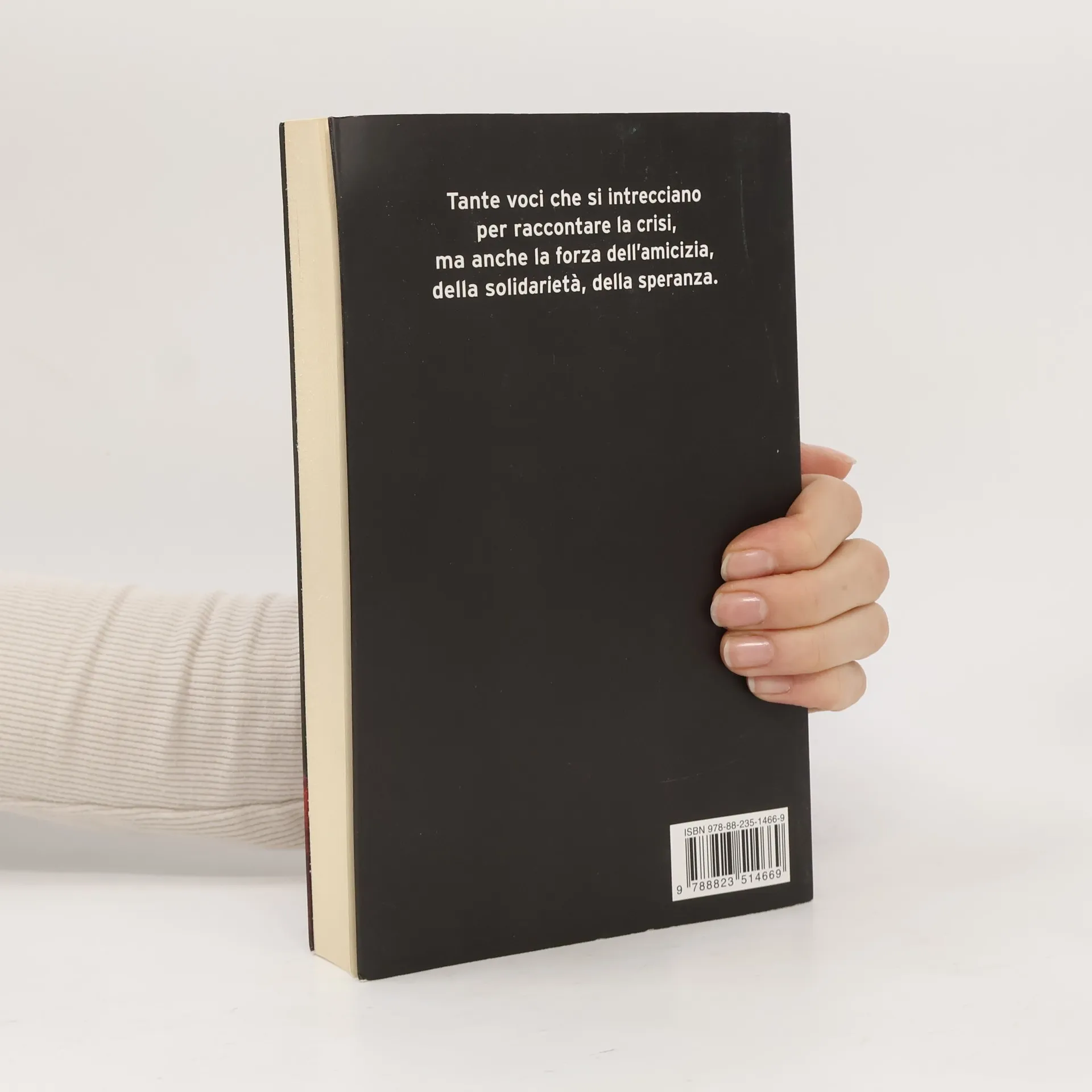 Madrid, un quartiere come tanti, con strade ampie e viuzze strette, bei palazzi accanto a edifici più modesti, abitato da persone diverse, coppie con e senza figli, famiglie allargate, single, giovani e anziani, spagnoli e stranieri, negozianti e operai, commesse e professionisti: come se la cavano, come fanno fronte a questi tempi difficili? Come si fa a resistere e a restare se stessi anche nell’occhio del ciclone? Amalia, la parrucchiera, scruta con orrore il negozio delle cinesi che sta aprendo proprio di fronte al suo, una dottoressa deve lottare contro la chiusura dell’ospedale in cui lavora, un uomo divorziato piange in solitudine dietro a una parete, una nonna comincia a fare l’albero di Natale già in settembre per fare coraggio ai suoi, e intanto il bar di Pascual diventa la sede delle riunioni del comitato inquilini e delle loro battaglie, ma anche il teatro di tanti destini che si intrecciano e di amori che vorrebbero nascere o che stanno per finire… Tante storie, tante voci per raccontare la crisi sì, ma anche e soprattutto la capacità di risorgere, con la forza dell’amicizia, della solidarietà, dell’ottimismo. Per ritrovare il significato dei baci sul pane: un gesto semplice e pieno di dignità che lega passato e presente e non ha perso il suo valore.