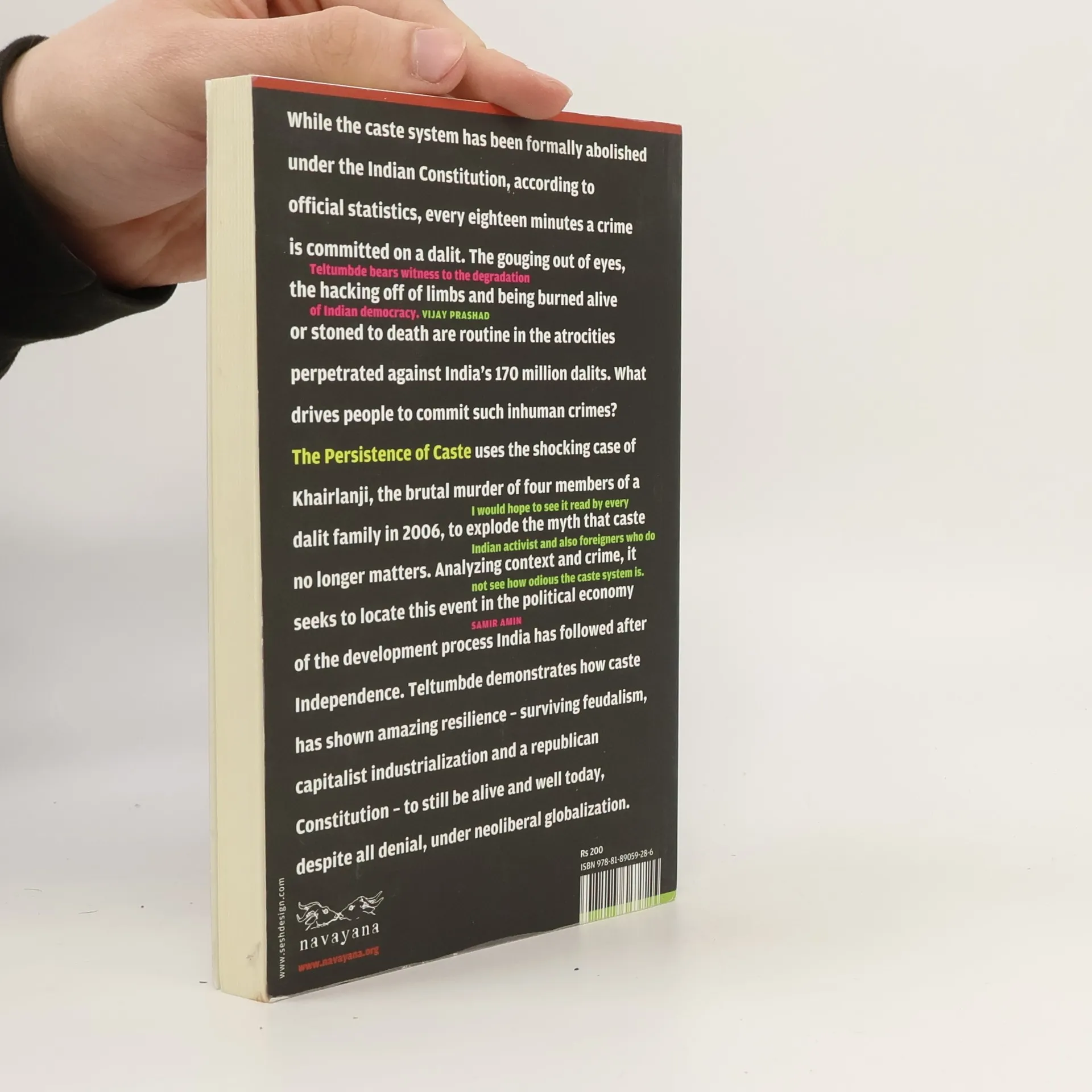 While the caste system has been formally abolished under the Indian Constitution, according to official statistics, every eighteen minutes a crime is committed on a dalit. The gouging out of eyes, the hacking off of limbs and being burned alive or stoned to death are routine in the atrocities perpetrated against India's 170 million dalits. What drives people to commit such inhuman crimes? The Persistence of Caste uses the shocking case of Khairlanji, the brutal murder of four members of a dalit family in 2006, to explode the myth that caste no longer matters. Analyzing context and crime, it seeks to locate this event in the political economy of the development process India has followed after Independence. Teltumbde demonstrates how caste has shown amazing resilience—surviving feudalism, capitalist industrialization and a republican Constitution—to still be alive and well today, despite all denial, under neoliberal globalization.