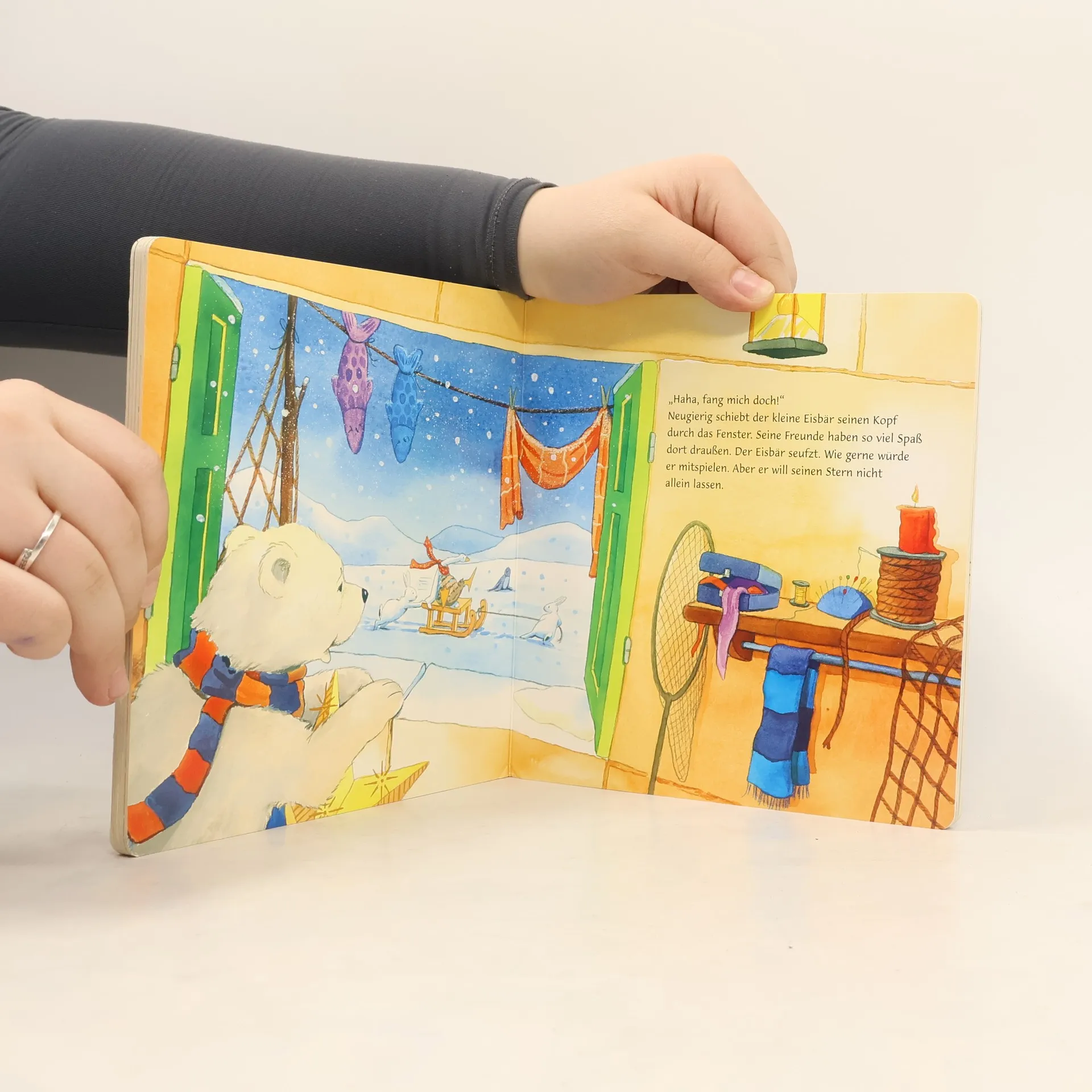 Ein Stern fällt vom Himmel. Ein echter, funkelnder Stern! Den möchte der kleine Eisbär für sich ganz allein behalten. Warum es manchmal doch besser ist, seine Schätze zu teilen, und wie schön es ist, gute Freunde zu haben, erzählt diese zauberhafte Wintergeschichte.