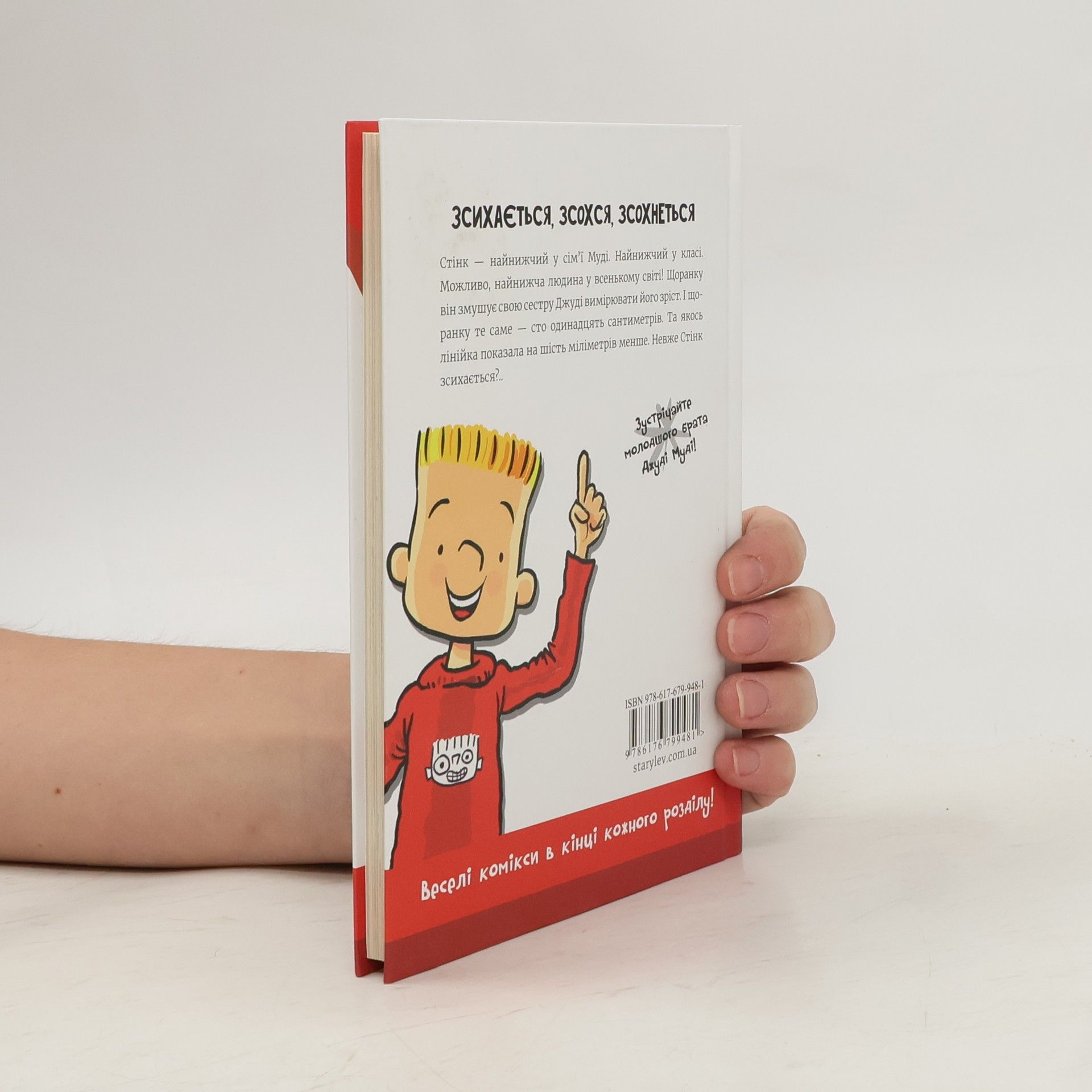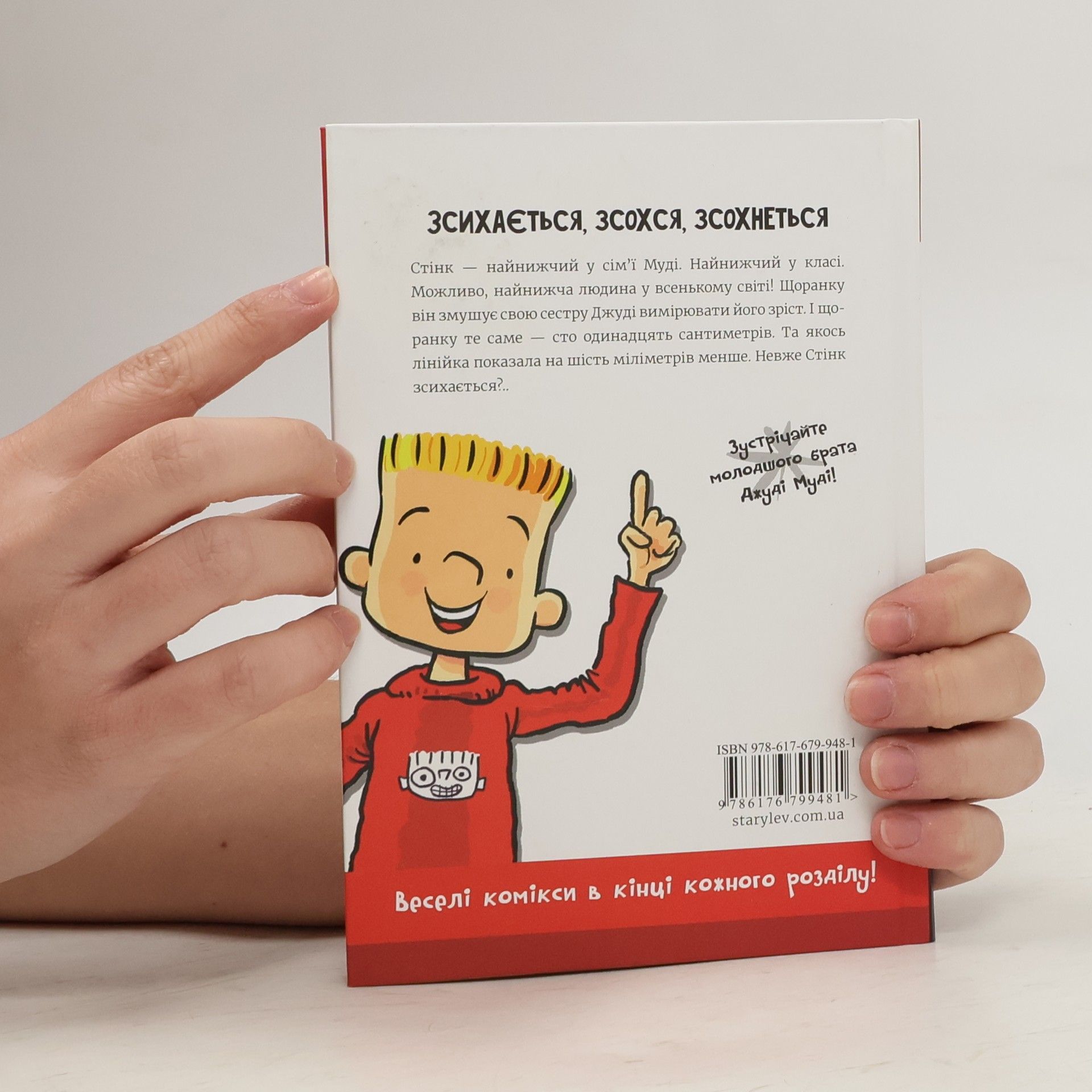 Стінк – найнижчий у своїй сім’ї. Найнижчий у класі. Можливо, найнижчий хлопчик у всьому світі. Він змушує свою сестру Джуді щоранку вимірювати його зріст. Стінк готовий на все, що завгодно, навіть їсти горошок і пити молоко, аби лиш хоч трішки підрости. Та Джуді виявляє, що він не росте, а… зсихається! Що ж тепер робити бідному Стінкові? Зустрічайте Стінка Муді в окремій серії книжок. Стінк не лише дошкуляє своїй старшій сестрі Джуді Муді, він любить читати енциклопедію і малювати комікси!