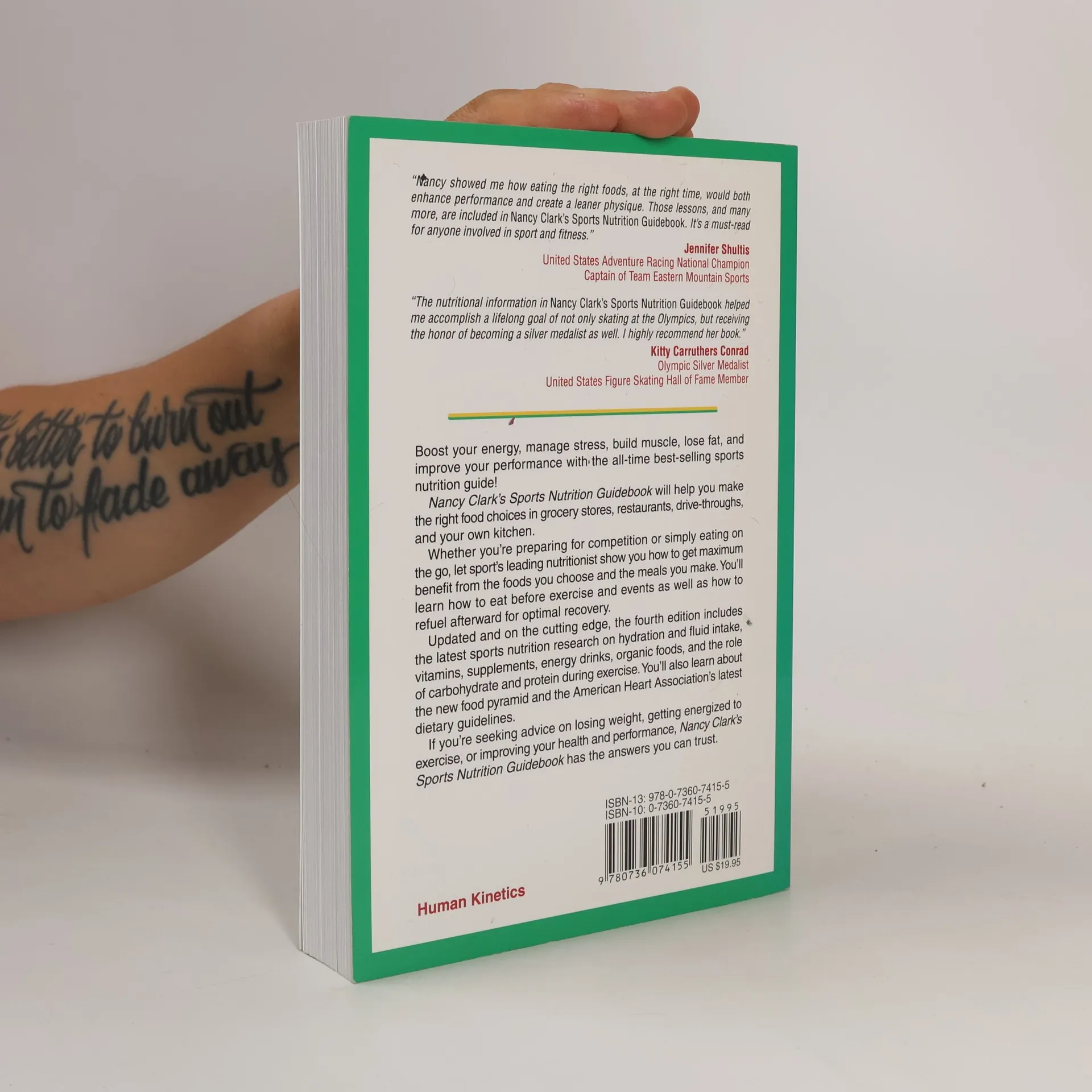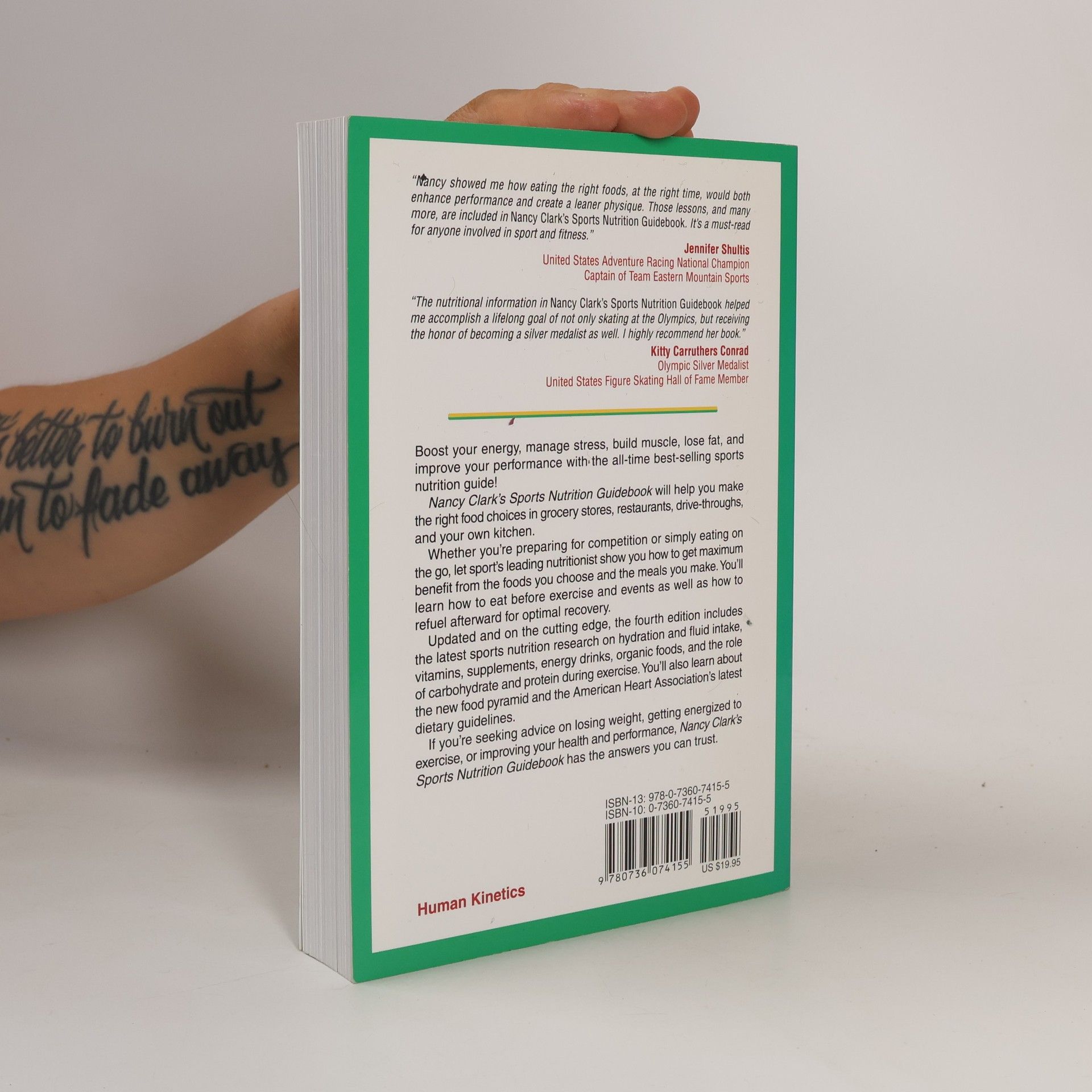 Boost your energy, manage stress, build muscle, lose fat, and improve your performance with the all-time best-selling sports nutrition guide! Nancy Clark's Sports Nutrition Guidebook will help you make the right food choices in grocery stores, restaurants, drive-throughs, and your own kitchen. Whether you're preparing for competition or simply eating on the go, let sport's leading nutritionist show you how to get maximum benefit from the foods you choose and the meals you make. You'll learn how to eat before exercise and events as well as how to refuel afterward for optimal recovery. Updated and on the cutting edge, the fourth edition includes the latest sports nutrition research on hydration and fluid intake, vitamins, supplements, energy drinks, organic foods, and the role of carbohydrate and protein during exercise. You'll also learn about the new food pyramid and the American Heart Association's latest dietary guidelines. If you're seeking advice on losing weight, getting energized to exercise, or improving your health and performance, Nancy Clark's Sports Nutrition Guidebook has the answers you can trust.