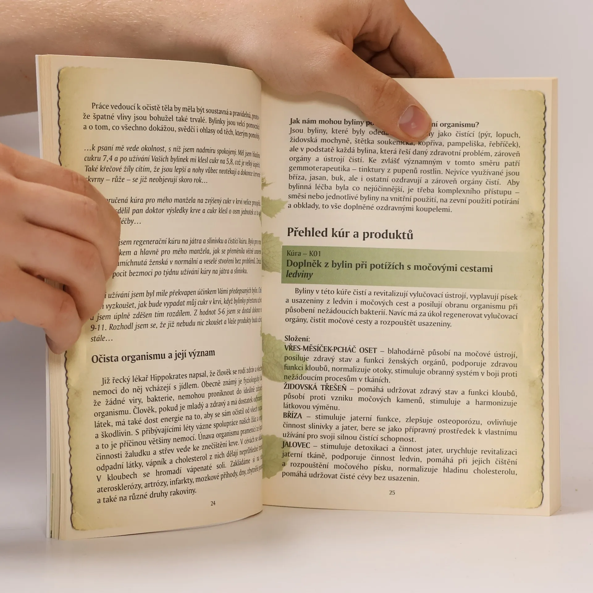 Kniha v úvodu krátce představuje firmu Naděje paní Mgr. Jarmily Podhorné v Brodku u Konice věnující se léčivým bylinám,které z velké části sama vyrábí. Dále je v knize přehledně sestavena tabulka indikací,podle které si lze dohledat jaká bylina je na danný problém nejlepší. Podrobně jsou pak rozebrány nejčastější zdravotní problémy a kompletní bylinné kůry k jejich nápravě. V závěrečné části knihy jsou představeny všechny výrobky firmy,tinktury,spec. směsi,masti,gely oleje,gemmoglukany, koupele a další.