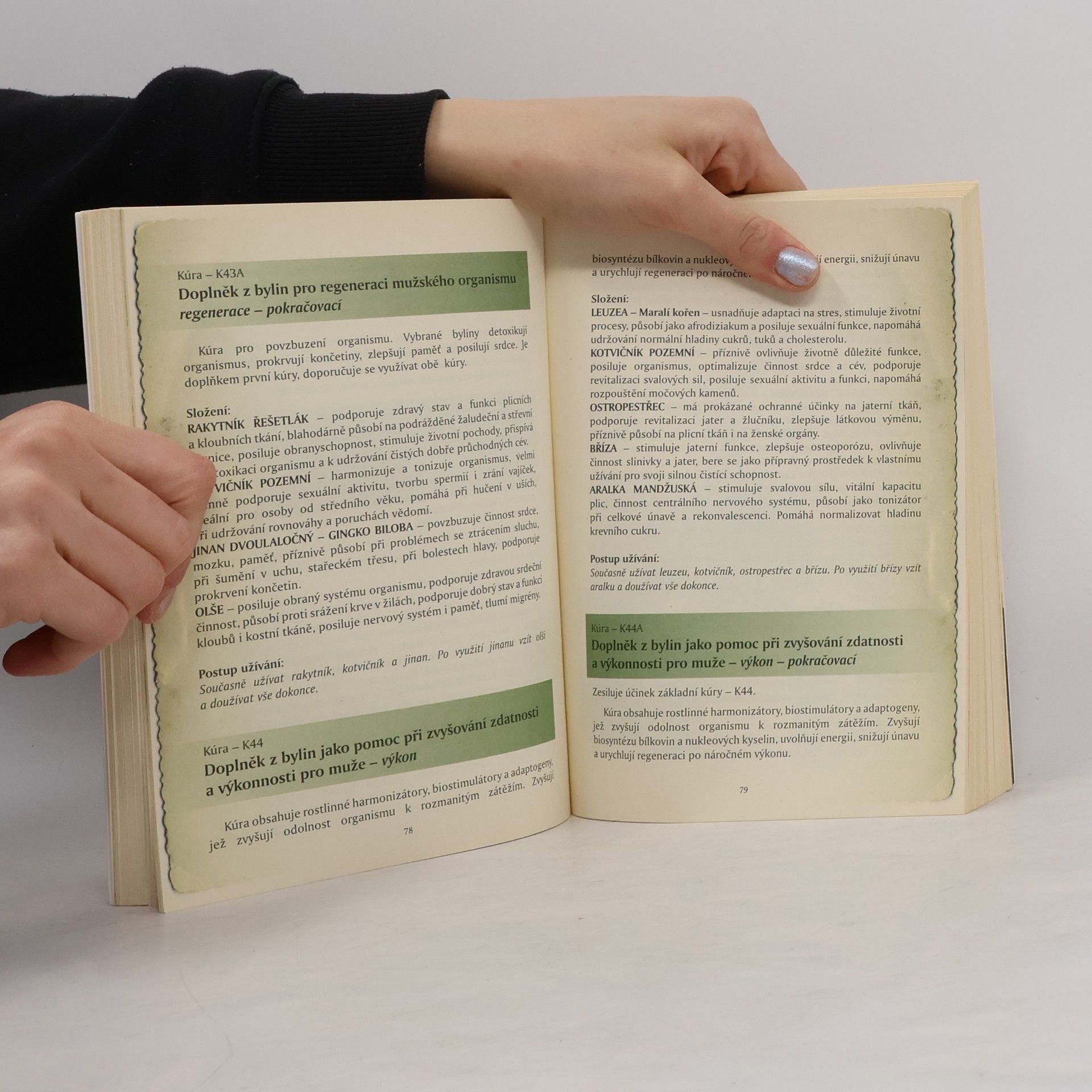 Kniha v úvodu krátce představuje firmu Naděje paní Mgr. Jarmily Podhorné v Brodku u Konice věnující se léčivým bylinám,které z velké části sama vyrábí. Dále je v knize přehledně sestavena tabulka indikací,podle které si lze dohledat jaká bylina je na danný problém nejlepší. Podrobně jsou pak rozebrány nejčastější zdravotní problémy a kompletní bylinné kůry k jejich nápravě. V závěrečné části knihy jsou představeny všechny výrobky firmy,tinktury,spec. směsi,masti,gely oleje,gemmoglukany, koupele a další.