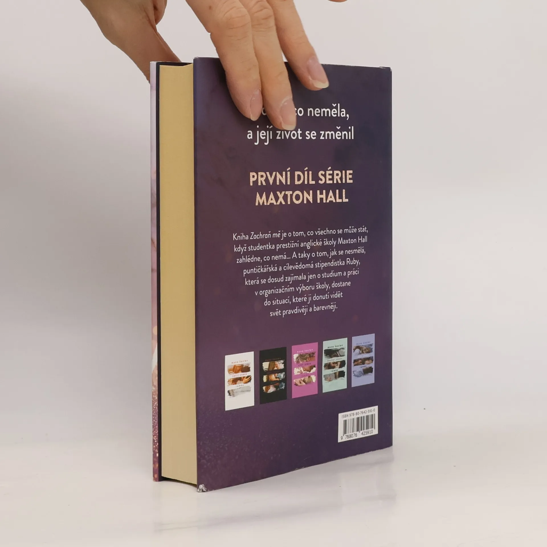 Kniha Zachraň mě je o tom, co se všechno může stát, když studentka prestižní školy Maxton Hall v Anglii uvidí, co nemá… Taky o tom, jak se nesmělá, puntičkářská a cílevědomá stipendistka Ruby, která se dosud zajímala jen o studium a práci v Organizačním výboru pro školu, dostane do situací, které ji donutí vidět svět pravdivěji a barevněji. Rodina Ruby je docela obyčejná, ale harmonická, zatímco James je dědicem starobylého oděvního impéria a příkladem zkaženého, nevychovaného mladíka, který se snaží „užít si poslední rok na střední“. Kniha je o jejich vzájemné přitažlivosti a štěstí, které spolu nacházejí, ale o které musejí bojovat, a stále znovu jim uniká. Je o tom, jaké to je, projít se po prvé kampusem oxfordské univerzity, na které Ruby od dětství touží studovat, a přáních, která se možná splní. Jaké je, když se potkají na přijímacích zkouškách na Oxford daleko od domova… Kniha vás zve do světa dramatické první lásky, romantiky studentských let a napínavých okolností, které svět Ruby a Jamese obklopují.