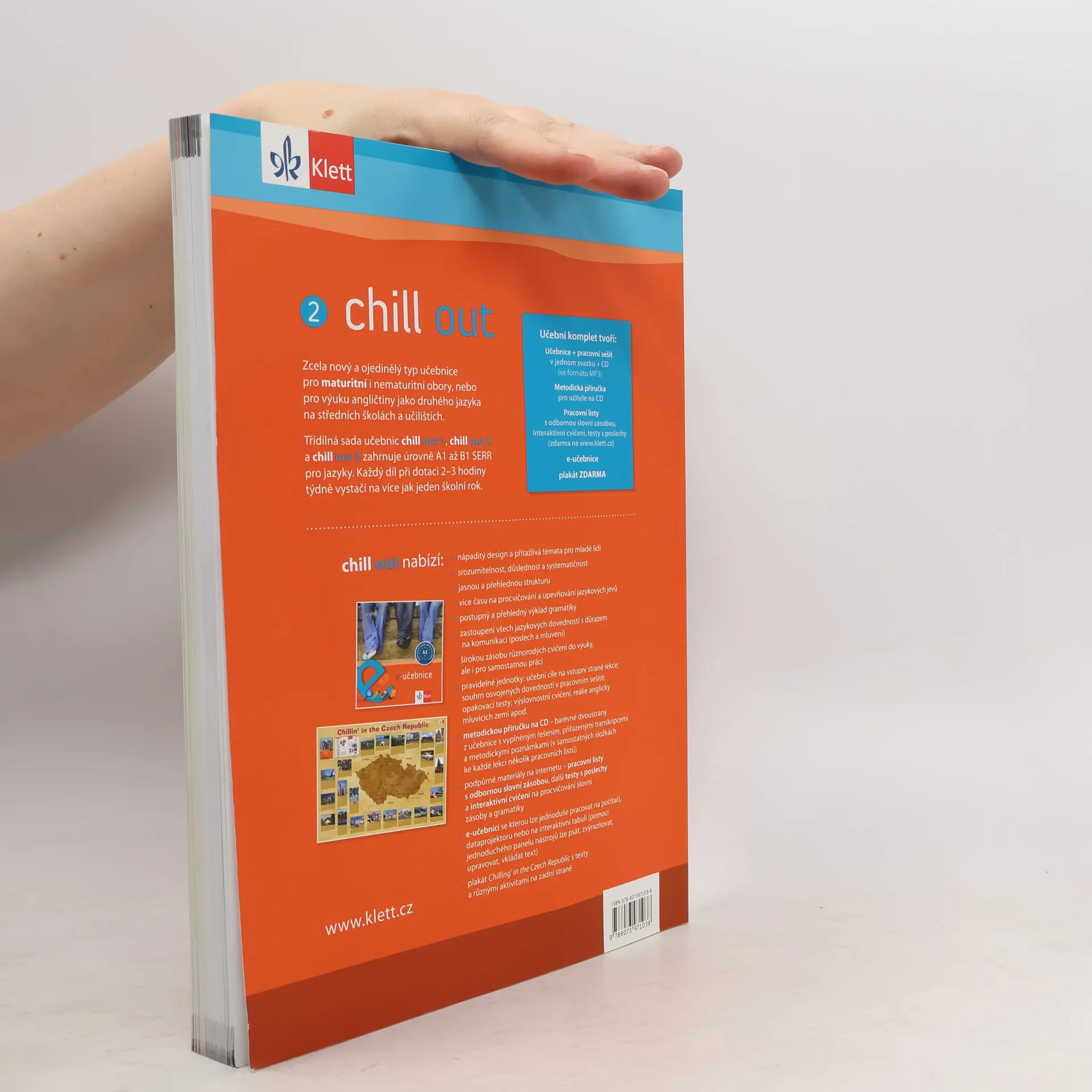 Zcela nová a originální učebnice angličtiny pro střední odborné školy a učiliště, která zohledňuje požadavky českých učitelů a jejich studentů a připravuje k nové maturitě z anglického jazyka. Celé třídílné vydání zahrnuje úrovně A1-B1 dle SERR. Učebnice chill out reaguje na aktuální potřeby a nároky studentů i učitelů středních odborných škol: přístupnou formou nabízí studentům přiměřené a funkční množství gramatiky i slovní zásoby věnuje více času na procvičení i osvojení si základních jazykových jevů díky důrazu na poslechová a komunikační cvičení se studenti naučí aktivně používat základy anglického jazyka a z výuky si odnesou reálnou schopnost se v angličtině dorozumět je přehledná, srozumitelná a pro mladé lidi graficky i obsahově přitažlivá. Chill out má všechny výhody moderní učebnice: barevný, přitažlivý design a zajímavá témata pro mladé lidi důraz na schopnost samostatně mluvit i rozumět anglické konverzaci mnoho podpůrných materiálů pro učitele. Chill out je soustavná a důsledná: systémově procvičuje všechny základní gramatické jevy upřednostňuje přehledný, postupný výklad nabízí bezpečnou zásobu rozmanitých cvičení pro výuku i domácí přípravu.