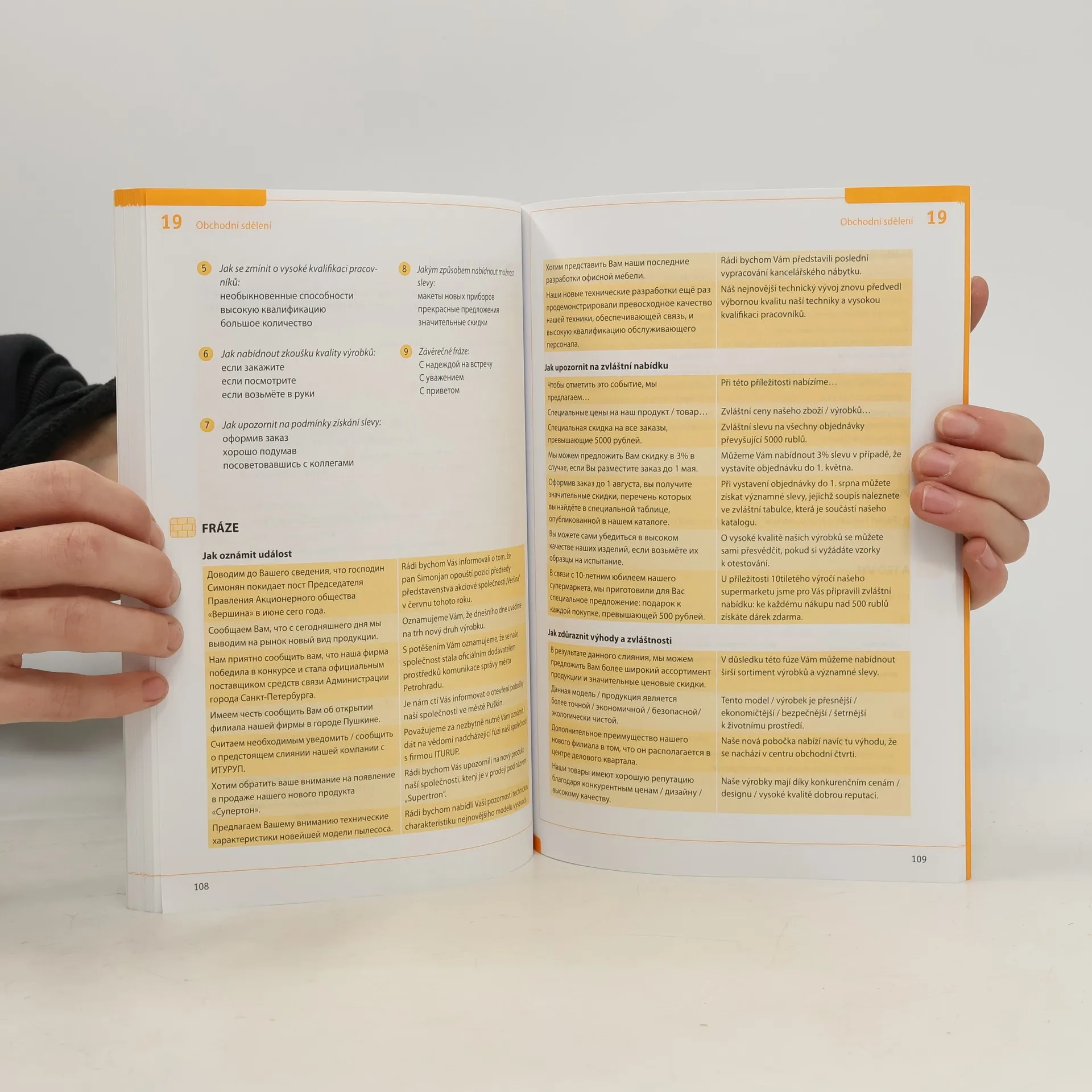 Praktická příručka pro kanceláře nejrůznějších úřadů a institucí, ekonomické, manažerské i jiné odborné školy, obchodníky a podnikatele. 24 tematických kapitol s četnými příklady, jak formulovat obchodní dopis, fax a e-mail, jak písemně nebo telefonicky vyřídit nejrůznější žádosti, objednávky či zajistit rezervace, jak správně koncipovat životopis apod. Množství výrazů a živých frází ze současného jazyka, které se naučíte v připojených cvičeních používat, posílí vaši profesionalitu a jistotu v často komplikovaných jednáních s obchodními partnery.