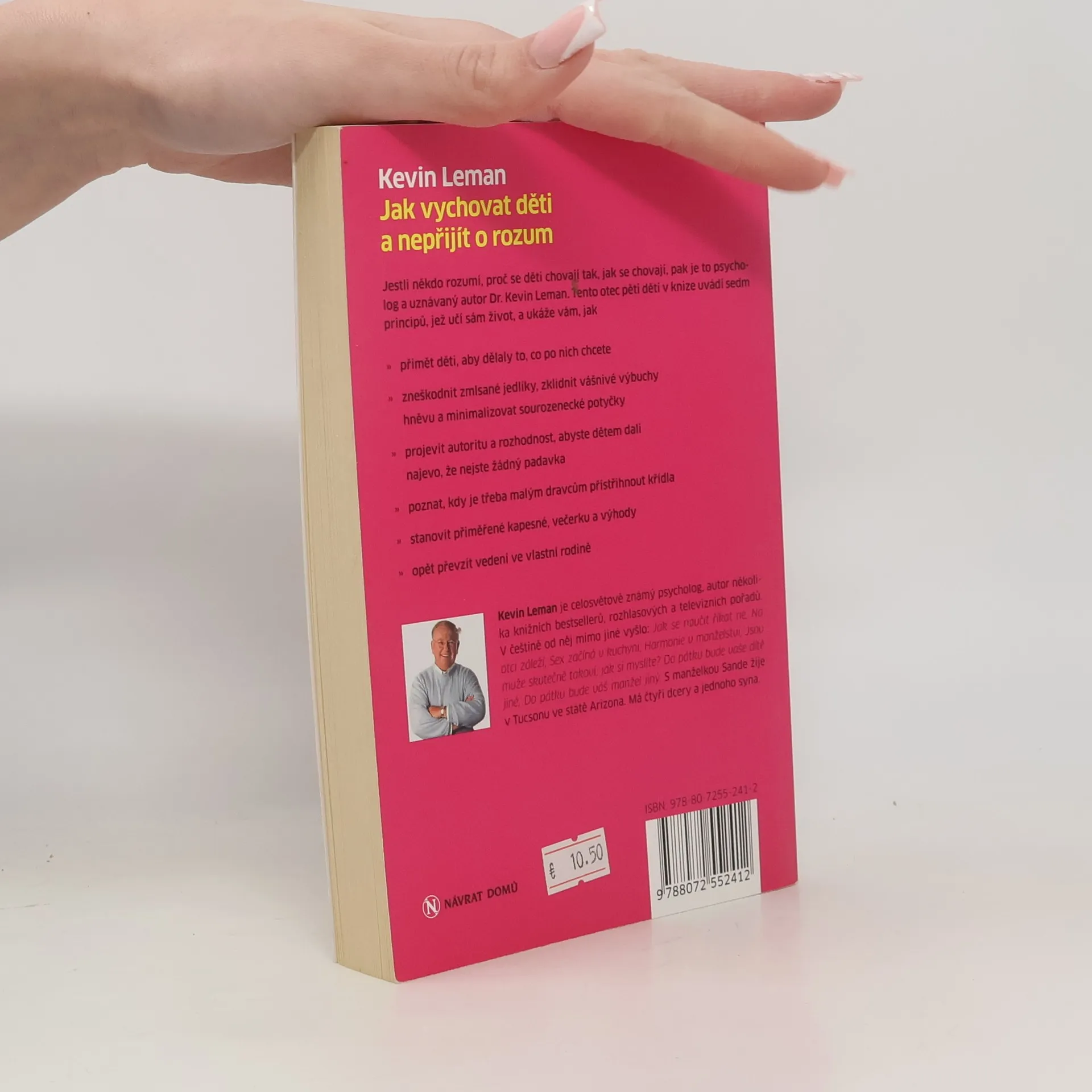 Principy, jež učí sám život. Jestli někdo rozumí, proč se děti chovají tak, jak se chovají, pak je to psycholog a uznávaný autor Dr. Kevin Leman. Tento otec pěti dětí v knize uvádí sedm principů, jež učí sám život, a ukáže vám , •jak přimět děti, aby dělaly to, co po nich chcete, •zneškodnit zmlsané jedlíky, •zklidnit vášnivé výbuchy hněvu, •minimalizovat sourozenecké potyčky, •projevit autoritu a rozhodnost, abyste dětem dali najevo, že nejste žádný padavka, • poznat, kdy je třeba malým dravcům přistřihnout křídla, • stanovit přiměřené kapesné, večerku a výhody, • opět převzít vedení ve vlastní rodin