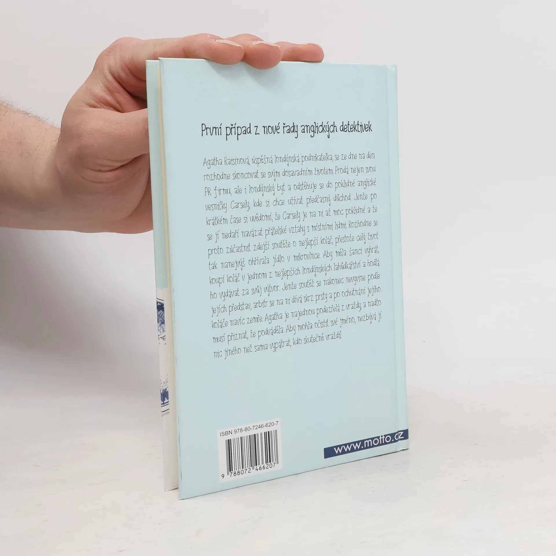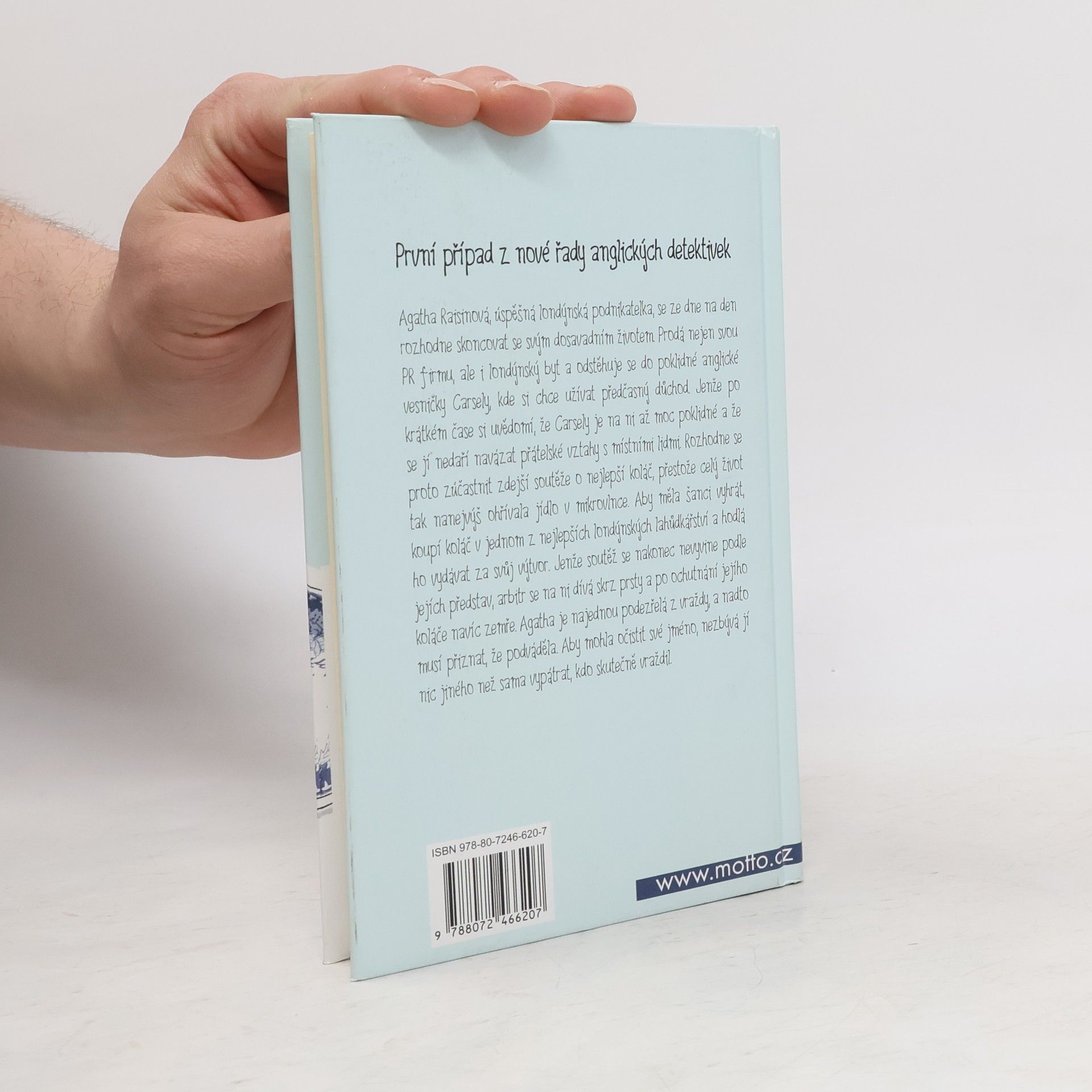 Agatha Raisinová, úspěšná londýnská podnikatelka, se ze dne na den rozhodne skoncovat se svým dosavadním životem. Prodá nejen svou PR firmu, ale i londýnský byt a odstěhuje se do poklidné anglické vesničky Carsely, kde si chce užívat předčasný důchod. Jenže po krátkém čase si uvědomí, že Carsely je na ní až moc poklidné a že se jí nedaří navázat přátelské vztahy s místními. Rozhodne se proto zúčastnit tamější soutěže o nejlepší koláč, a to přestože za celý život tak nanejvýš ohřívala jídlo v mikrovlnce. Aby měla šanci vyhrát, koupí koláč v jednom z nejlepších londýnských lahůdkářství a hodlá ho vydávat za svůj výtvor. Jenže soutěž se nakonec nevyvine podle jejích představ, arbitr se na ni dívá skrz prsty a po ochutnání jejího koláče navíc zemře. Agatha je tedy najednou podezřelá z vraždy, a nadto musí přiznat, že podváděla. Aby mohla očistit své jméno, nezbývá jí nic jiného než sama vypátrat, kdo skutečně vraždil. zdroj: www.pitaval.cz