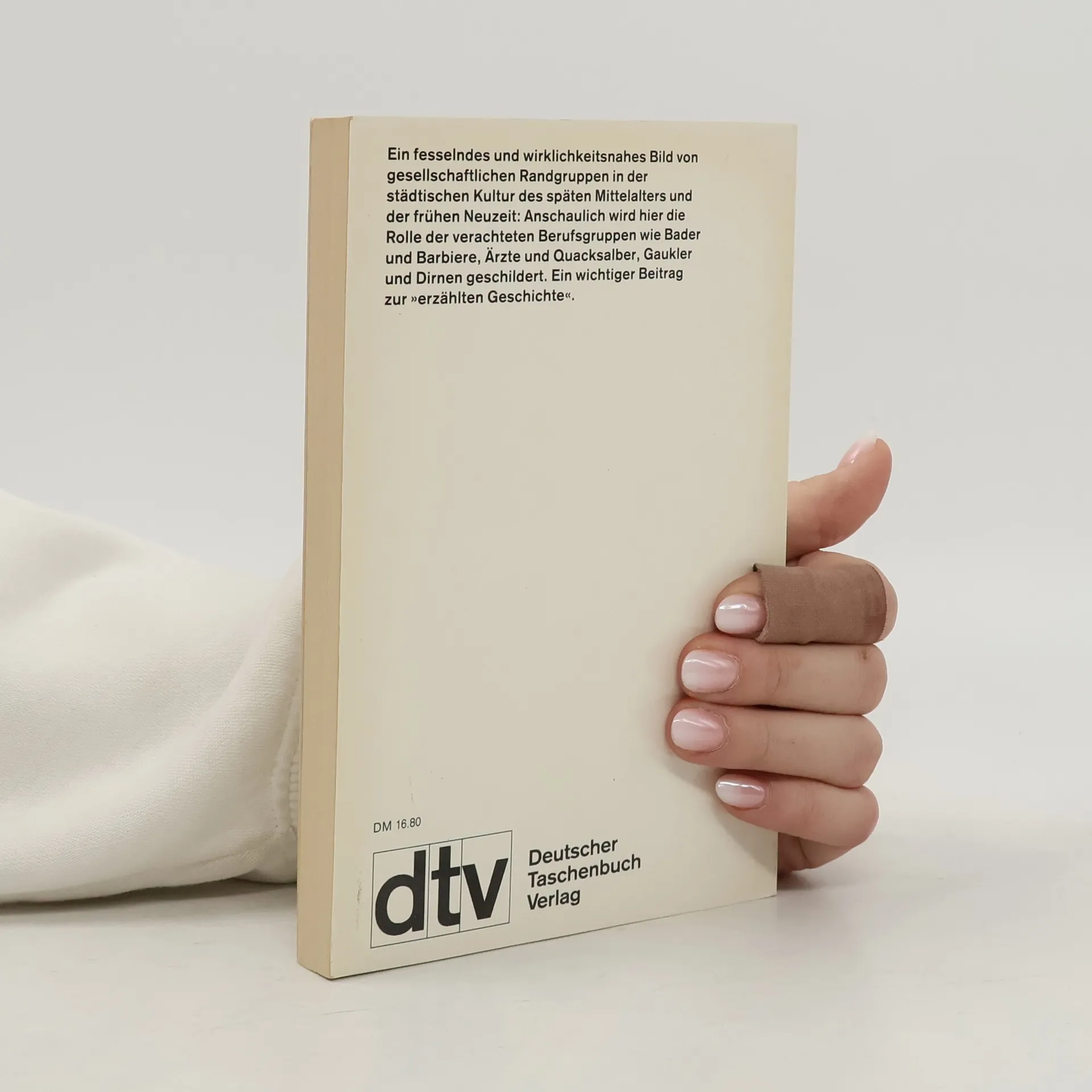 Ein fesselndes und wirklichkeitsnahes Bild von gesellschaftlichen Randgruppen in der städtischen Kultur des späten Mittelalters und der frühen Neuzeit; Anschaulich wird hier die Rolle der verachteten Berufsgruppen wie Bader und Barbiere, Ärzte und Quacksalber, Gaukler und Dirnen geschildert. Ein wichtiger Beitrag zur »erzählten Geschichte«.
