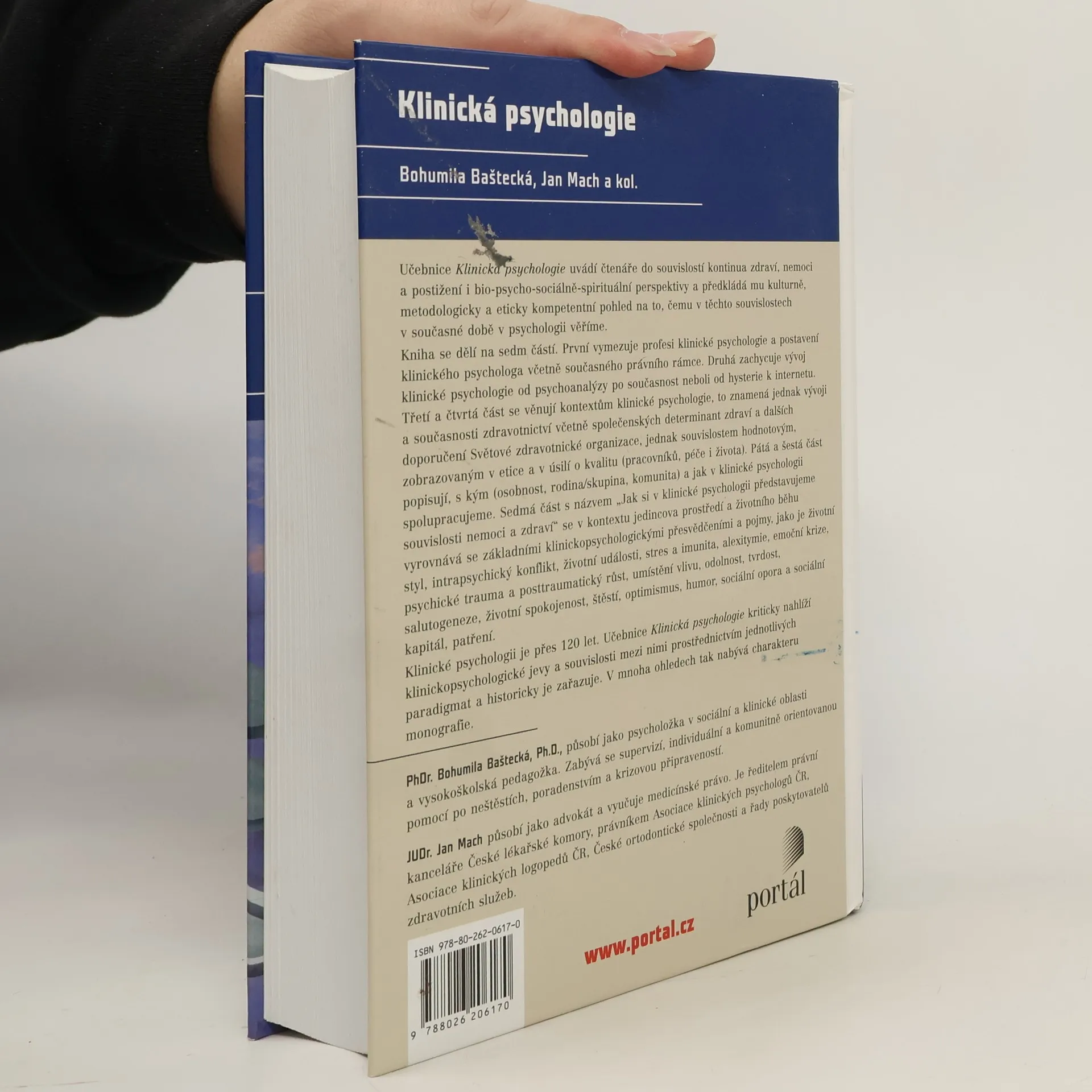 Klinické psychologii je přes sto let. Vztahuje se k člověku v nemoci i ve zdraví a ke zdravotnickým systémům, které o něj pečují. Pohled na to, co zdraví, nemoc a kvalitní systém je, se ale v důsledku společenských změn proměňuje. Pojmy jako stres, psychické trauma, emoční krize, životní spokojenost a životní styl, štěstí, sociální opora a sociální kapitál, odolnost, optimismus, kvalita života a péče, sociální spravedlnost a rovnost se k nemoci a zdraví vážou rozmanitými způsoby podle souvislostí historických a v kontextu jedincova osobního i rodinného času, jeho osobnosti, vztahů, spirituality a dynamického přizpůsobení změnám prostředí. Předkládaná učebnice kromě jedincovy cesty ke zdraví či nemoci nepomíjí ani objevování toho, co je rolí, úkolem a zodpovědností klinického psychologa při spolupráci s pacienty a jejich rodinami a v týmu s kolegy.