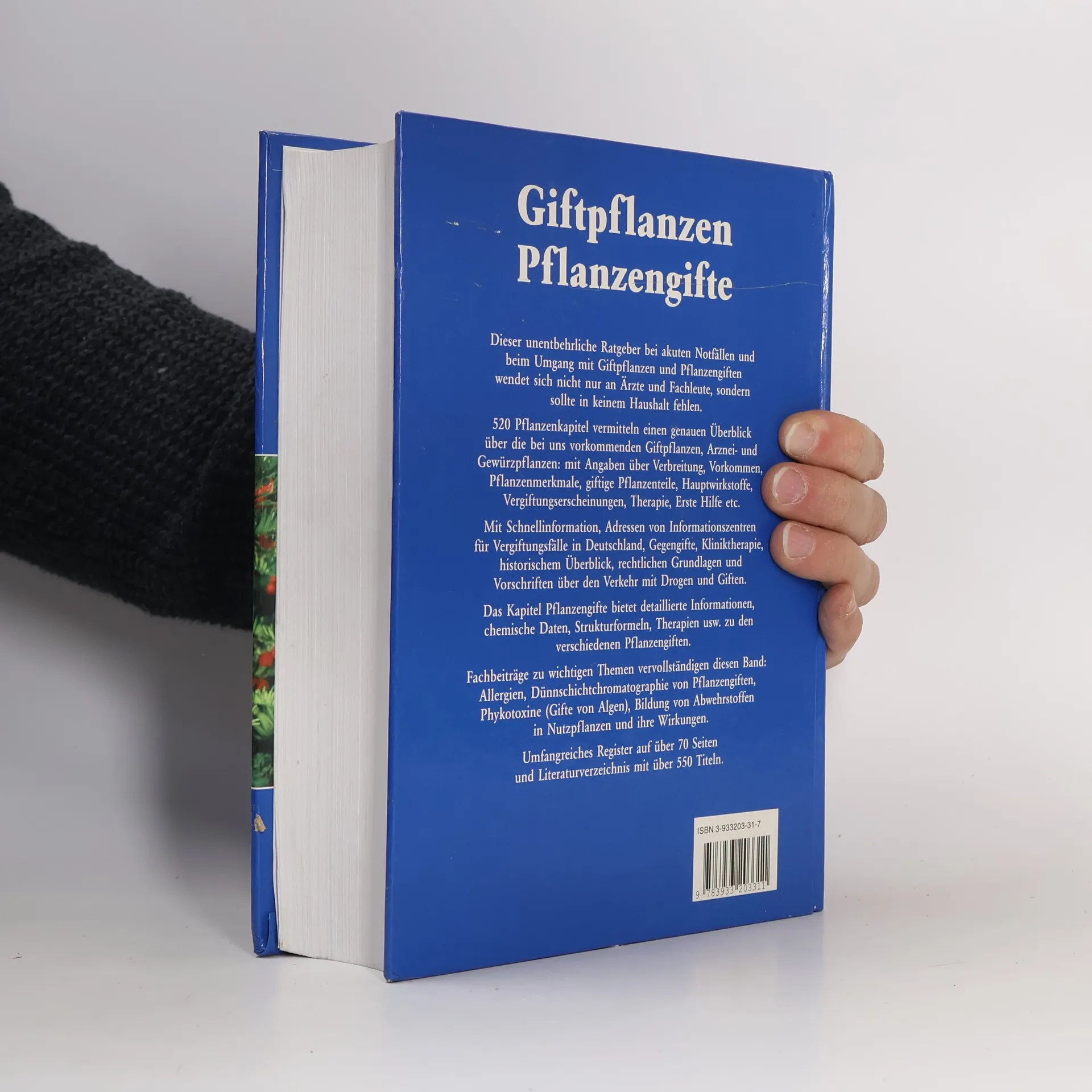 Dieser unentbehrliche Ratgeber bei akuten Notfällen und beim Umgang mit Giftpflanzen und Pflanzengiften wendet sich nicht nur an Ärzte und Fachleute, sondern sollte in keinem Haushalt fehlen. 520 Pflanzenkapitel vermitteln einen genauen Überblick über die bei uns vorkommenden Giftpflanzen, Arznei- und Gewürzpflanzen: mit Angaben über Verbreitung, Vorkommen, Pflanzenmerkmale, giftige Pflanzenteile, Hauptwirkstoffe, Vergiftungserscheinungen, Therapie, Erste Hilfe etc. Mit Schnellinformation, Adressen von Informationszentren für Vergiftungsfälle in Deutschland, Gegengifte, Kliniktherapie, historischer Überblick, rechtlichen Grundlagen und Vorschriften über den Verkehr mit Drogen und Giften. Das Kapitel Pflanzengifte bietet detailierte Informationen, chemische Daten, Strukturformeln, Therapien usw. zu den verschiedenen Pflanzengiften. Fachbeiträge zu wichtigen Themen vervollständigen diesen Band: Allergien, Dünnschichtchromatographie von Pflanzengiften, Phykotoxine (Gifte von Algen), Bildung von Abwehrstoffen in Nutzpflanzen und ihre Wirkungen. Umfangreiches Register auf über 70 Seiten und Literaturverzeichnis mit über 550 Titeln.