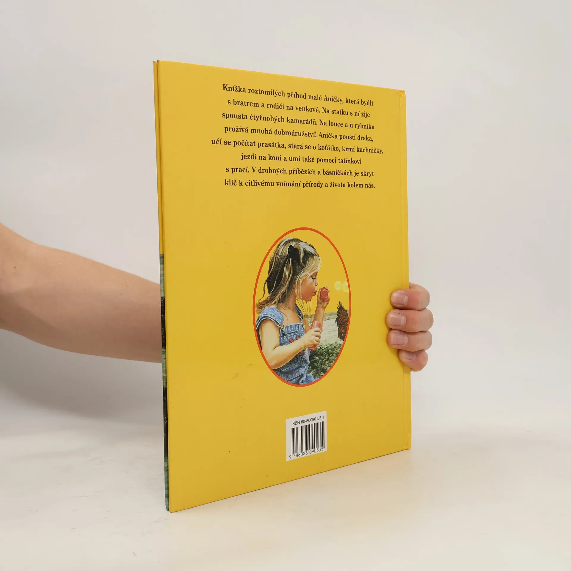 Knížka roztomilých příhod malé Aničky, která bydlí s bratrem a rodiči na venkově. Na statku s ní žije spousta čtyřnohých kamarádů. Na louce a u rybníka prožívá mnohá dobrodružství! Anička pouští draka, učí se počítat prasátka, stará se o koťátko, krmí kachničky, jezdí na koni a umí také pomoci tatínkovi s prací. V drobných příbězích a básničkách je skryt klíč k citlivému vnímání přírody a života kolem nás.