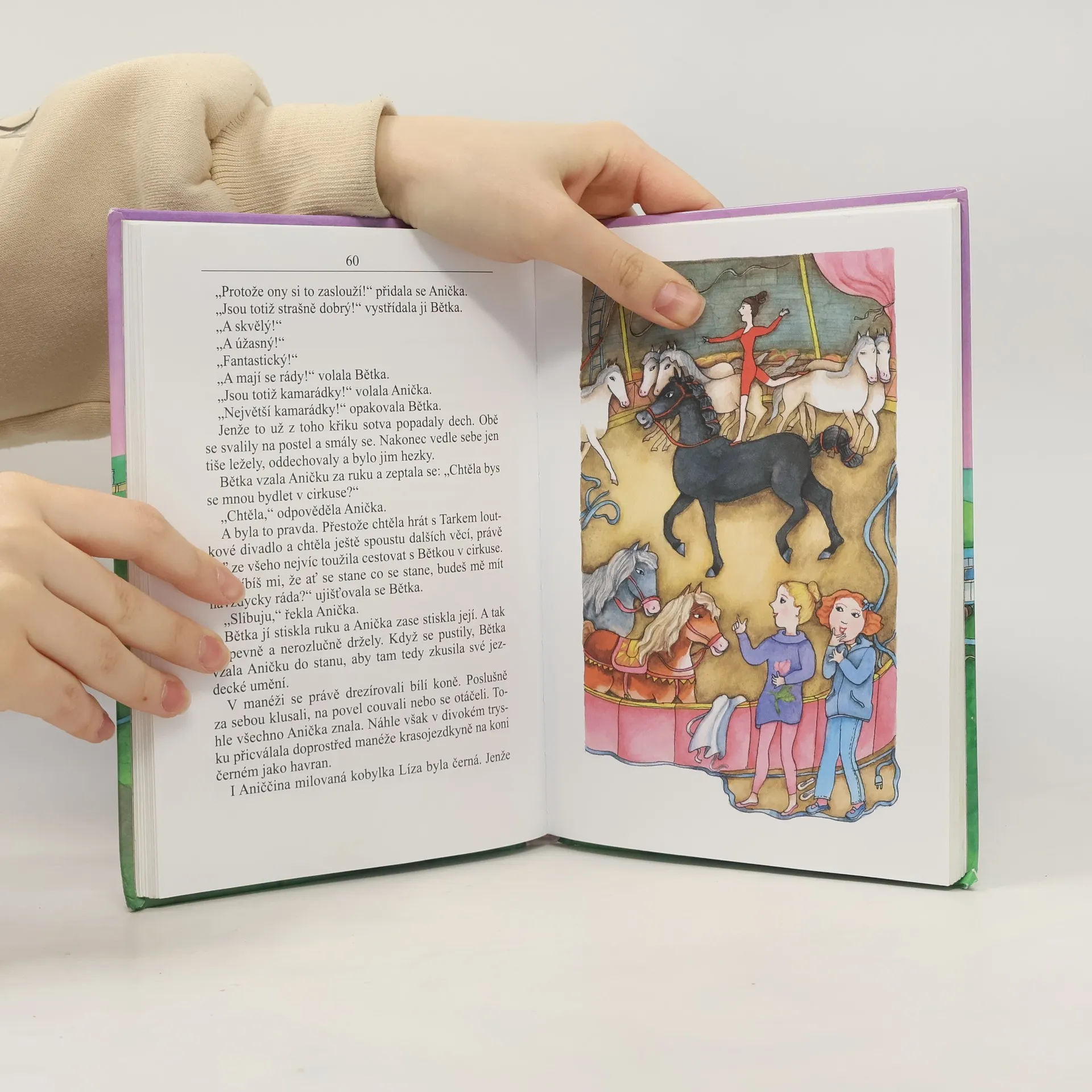 Cirkus přijel! nese se ráno nadšeně celou třídou. Anička se hned domluví s kamarádkami, že se po vyučování poběží k šapitó podívat. Anička je cirkusovým prostředím okouzlená – tak ráda by taky vystupovala v sobotním představení. Proto se na místo pozdě odpoledne ještě jednou vrátí. A potká se s malou provazochodkyní Bětkou. Že by novou kamarádkou? Možná že ta Aničce splní její největší přání…