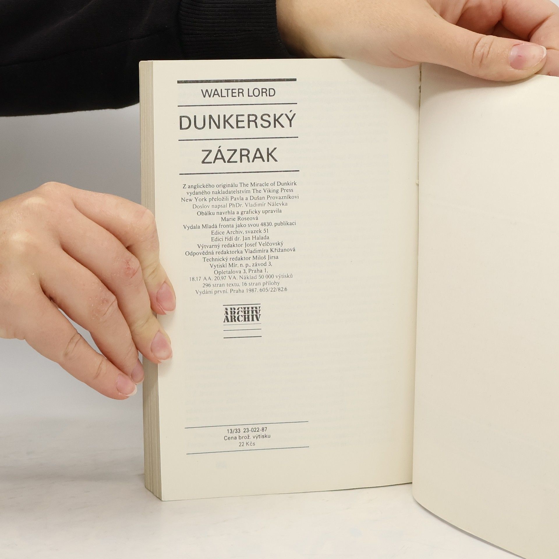 V květnu 1940 byla spojenecká vojska zatlačena do francouzského přístavu Dunkerque. Pro 400 000 vojáků byla jedinou cestou k záchraně evakuace do Anglie. Německé tanky stály 10 mil od nich a záchrana většiny z nich se zdála utopií. Kniha pojednává o největší záchranné operaci všech dob, díky které se podařilo zachránit 338 000 vojáků, což byl opravdu zázrak… Z anglického originálu The Miracle of Dunkirk vydaného nakladatelstvím The Viking Press, New York přeložili Pavla a Dušan Provazníkovi. Doslov napsal PhDr.Vladimír Nálevka. 296 stran textu, 16 stran přílohy. Vydání první.