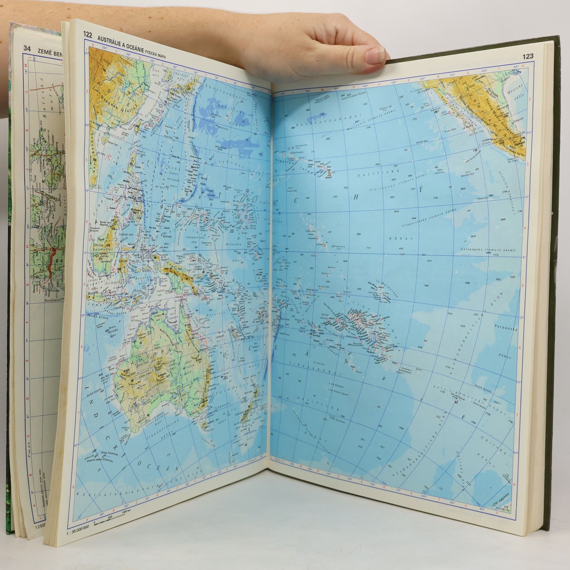 Atlas světa s mapami SSSR, Jugoslávie, NSR, NDR, ČSSR, rozdělení zemí před rozpadem Východního bloku. Také mapa Měsíce, postavení planet, astronomie, pohledy na hvězdnou oblohu obou polokoulí.