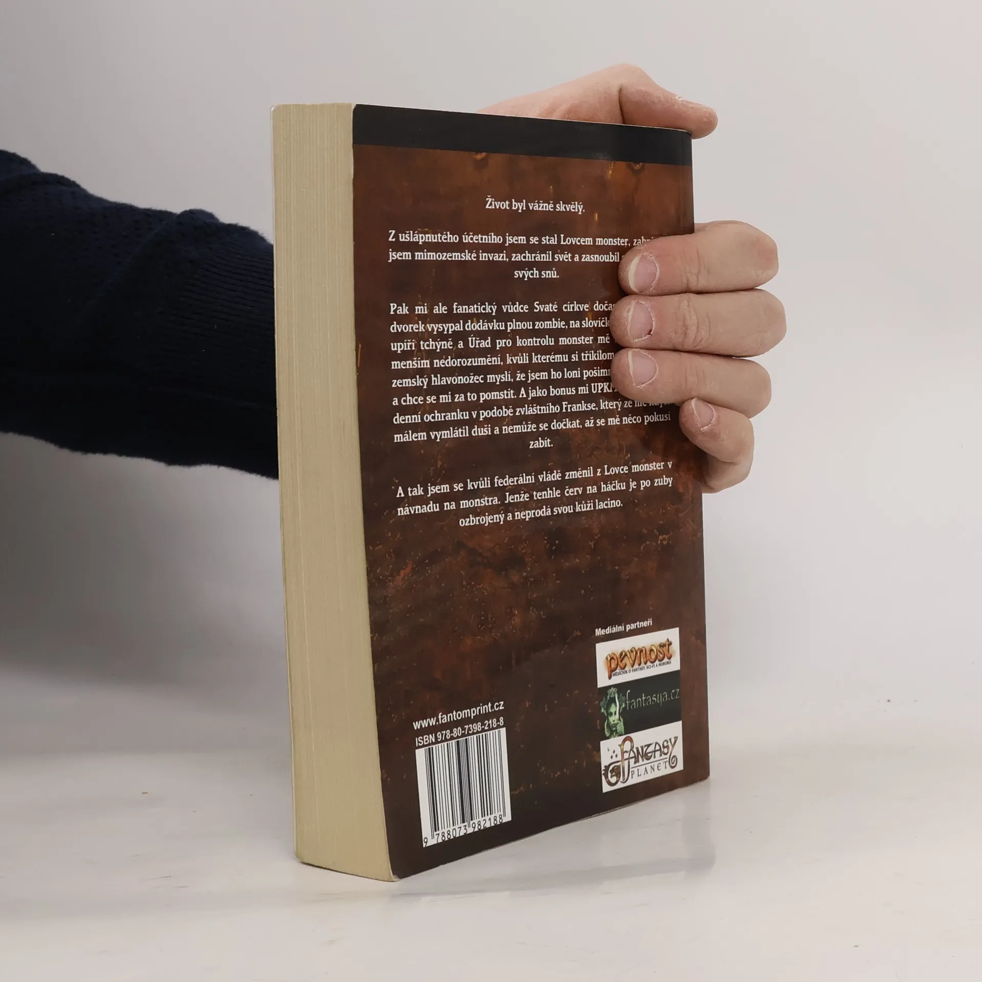 Život byl vážně skvělý. Z ušlápnutého účetního jsem se stal Lovcem monster, zabránil jsem mimozemské invazi, zachránil svět a zasnoubil se s dívkou svých snů. Pak mi ale fanatický vůdce Svaté církve dočasné smrti na dvorek vysypal dodávku plnou zombie, na slovíčko zaskočila má upíří tchýně a Úřad pro kontrolu monster mě informoval o menším nedorozumění, kvůli kterému si tříkilometrový mimozemský hlavonožec myslí, že jsem ho loni pošimral atomovkou, a chce se mi za to pomstít. A jako bonus mi UPKM přidělil celodenní ochranku v podobě zvláštního Frankse, který ze mě kdysi málem vymlátil duši a nemůže se dočkat, až se mě něco pokusí zabít. A tak jsem se kvůli federální vládě změnil z Lovce monster v návnadu na monstra. Jenže tenhle červ na háčku je po zuby ozbrojený a neprodá svou kůži lacino.