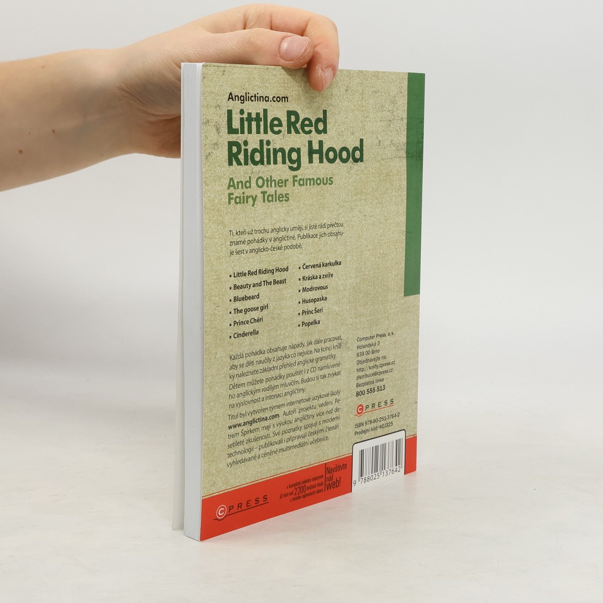Jazyková úroveň: Pokročilí Pohádky mají rádi malí i velcí čtenáři. Těm malým se díky jim otevírá svět fantazie, který se mnohdy prolíná se světem skutečným. Ti starší rádi zavzpomínají na bezstarostné dětství, kdy jim pohádky četli rodiče či prarodiče. V publikaci, kterou právě držíte v ruce, najdete šest známých i méně známých anglicko-českých pohádek. Ti z Vás, kteří už trochu anglicky umějí, si jistě rádi přečtou známé příběhy v angličtině. Dětem pohádky nejspíš přečtete česky, ale můžete jim je pustit na CD namluvené anglickým rodilým mluvčím, aby si zvykaly na výslovnost, rytmus a intonaci jazyka, který se jistě v budoucnu budou učit. Po každé pohádce najdete nápady, jak s pohádkou pracovat, aby se děti něco z angličtiny naučily, a i pro Vás jsou připravené jazykové komentáře pro mírně i více pokročilé studenty angličtiny. Na konci knížky naleznete základní přehled anglické gramatiky.